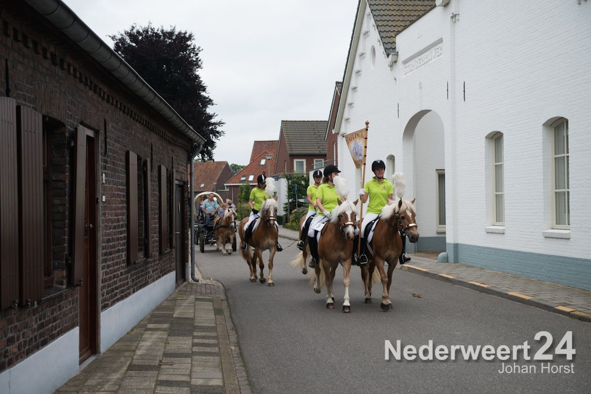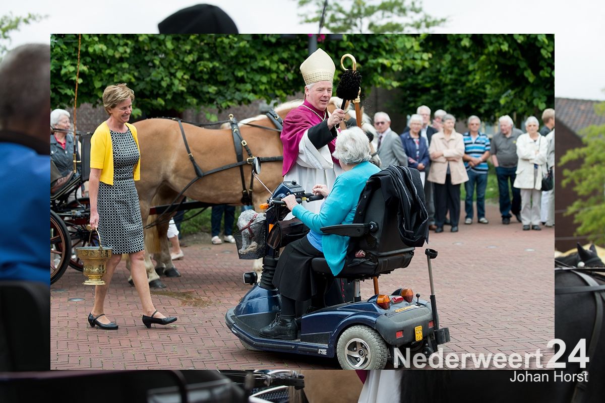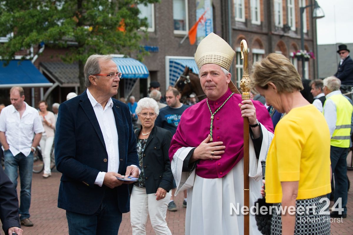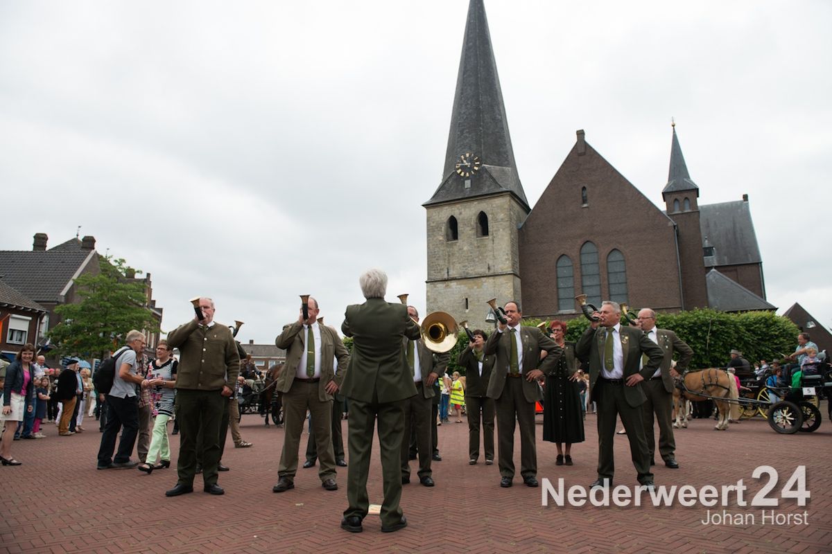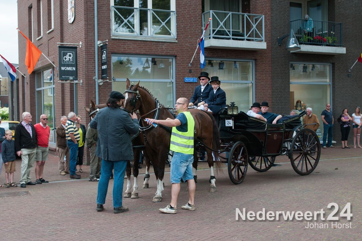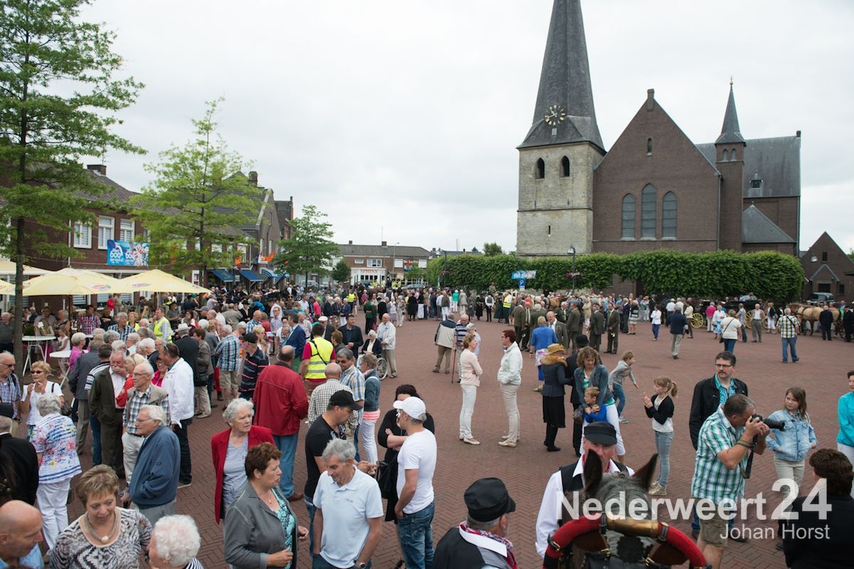 Na de zegen van hulpbisschop de Jong trok de grote Koetsentocht vanuit Stramproy richting Weert. Ruim dertig koetsen maakten een lint van antieke en hedendaagse koetsen.