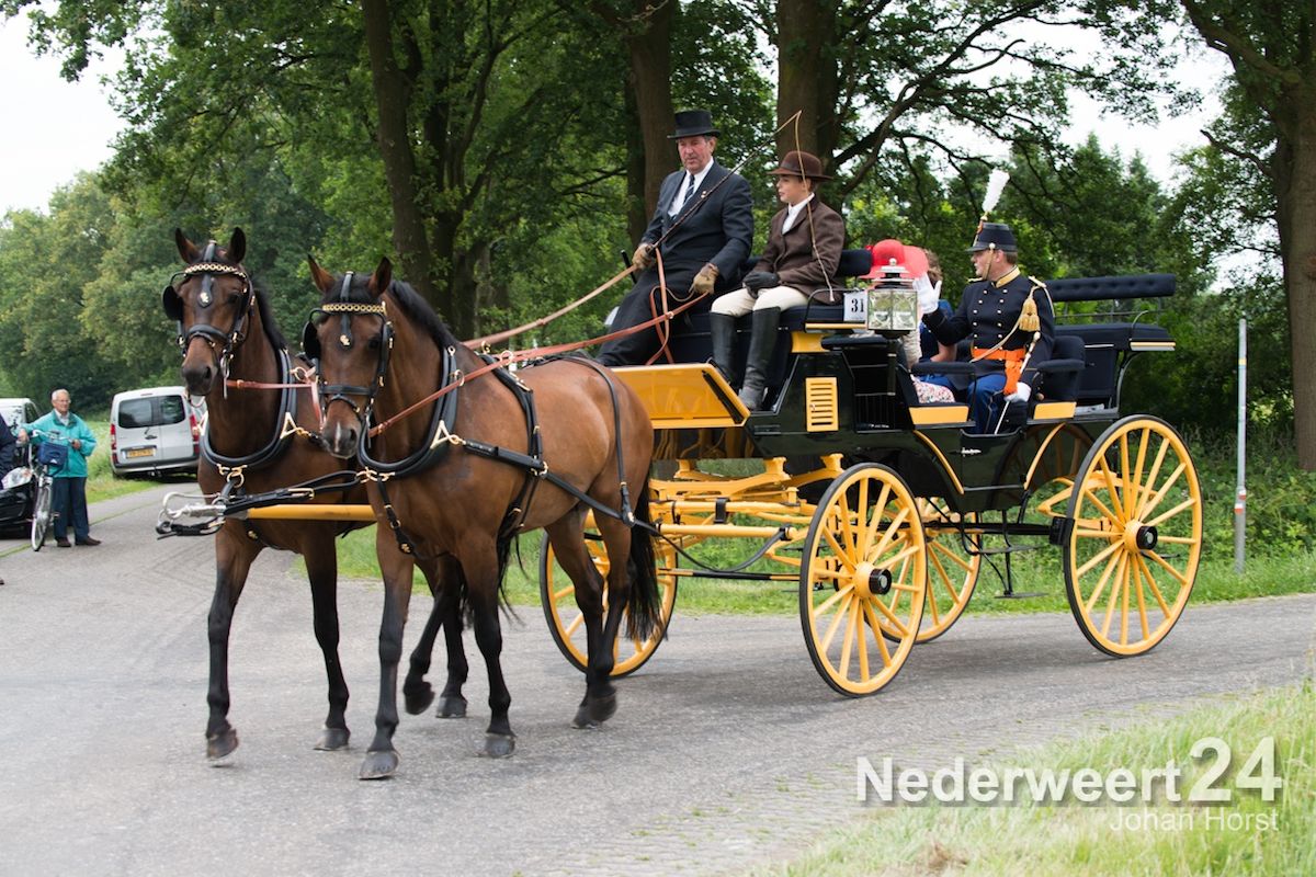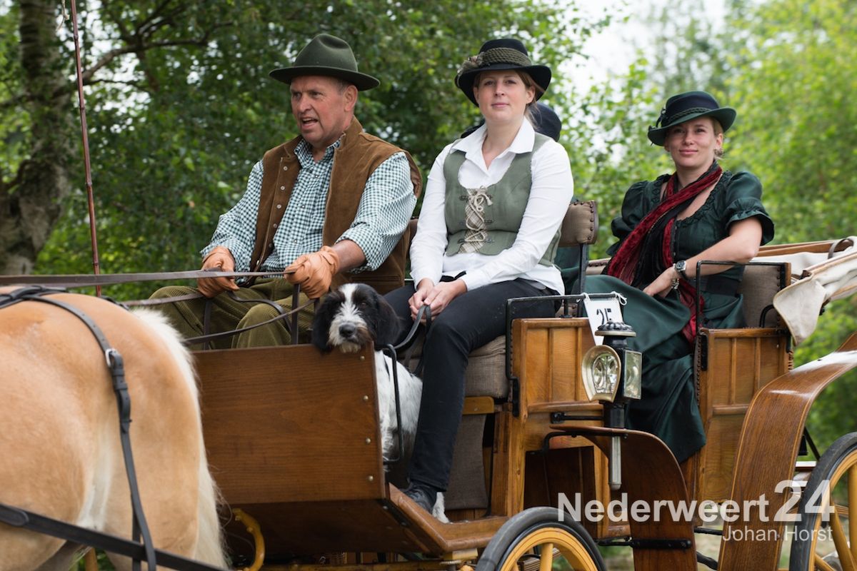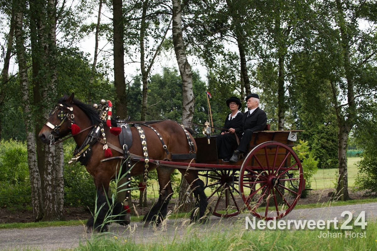 Een van de pronkstukken van de grote tocht was wel de paardentram van Graat Peeters uit Nederweert, die door vijf Nederlandse trekpaarden werd getrokken. Verder deden Frans en Maria Smeets van de Menclub Leveroy, Wiel Nies uit Nederweert Eind, Piets Saes uit Nederweert en Tjeu Verhagen uit Leveroy mee.