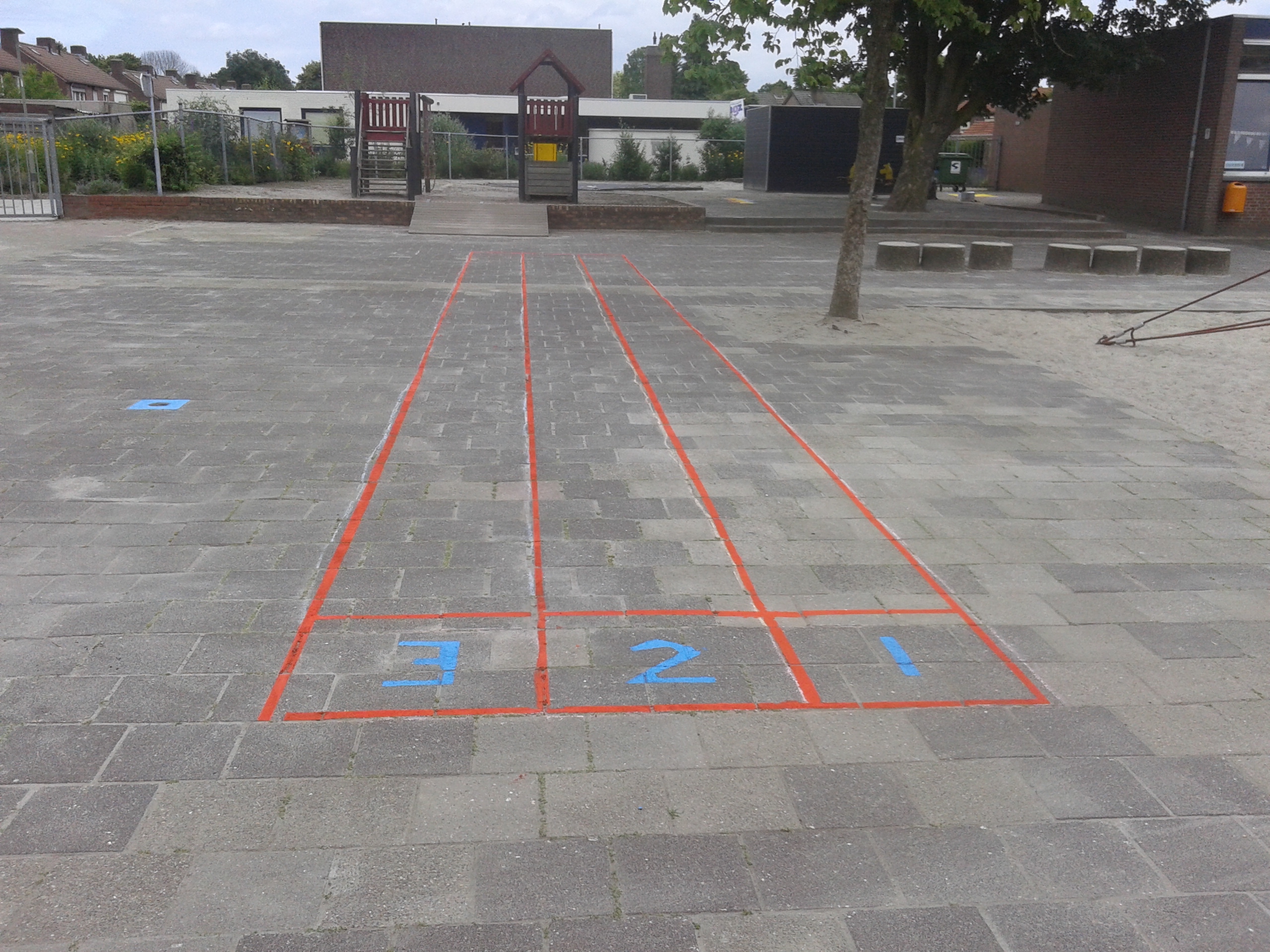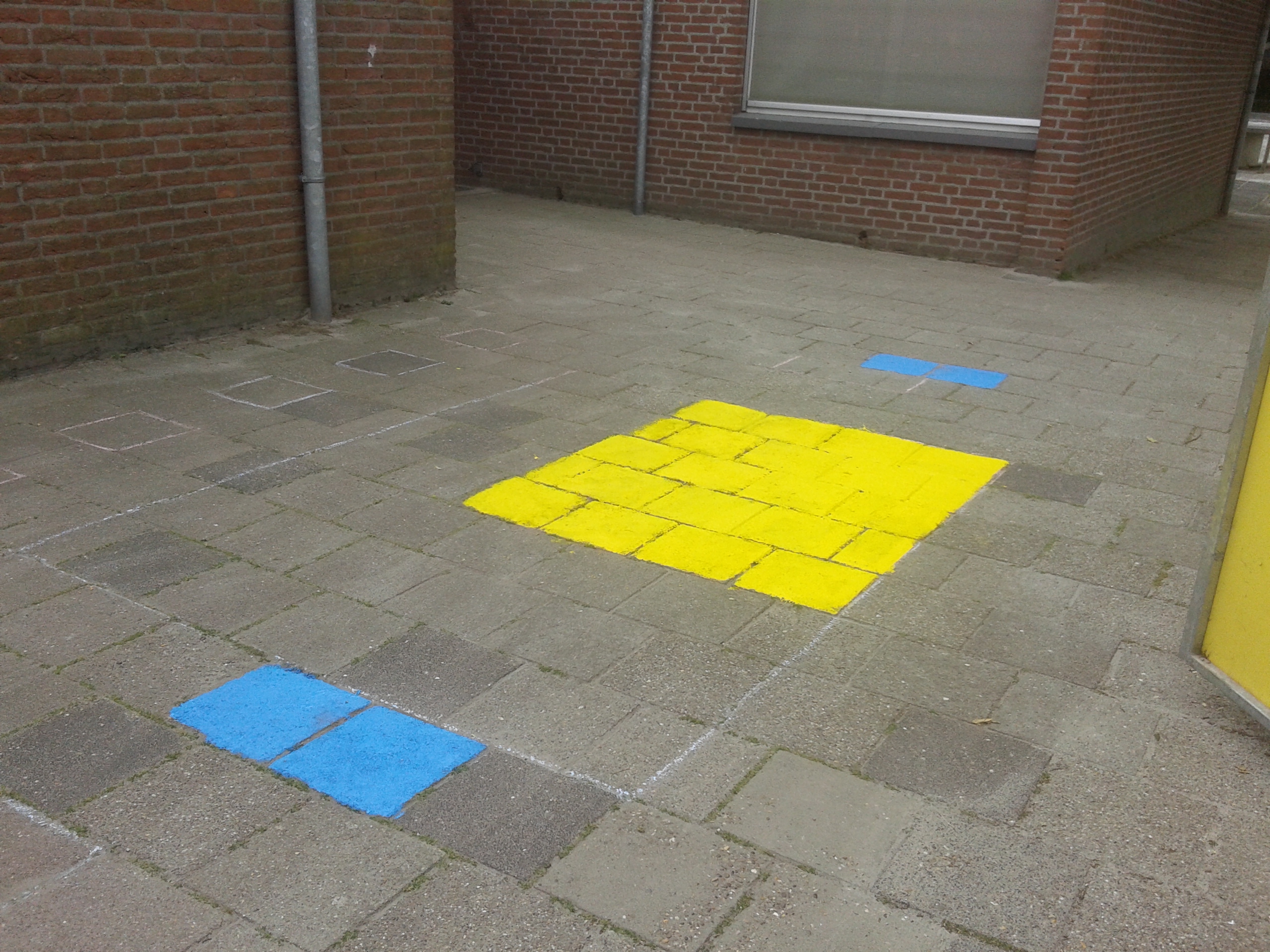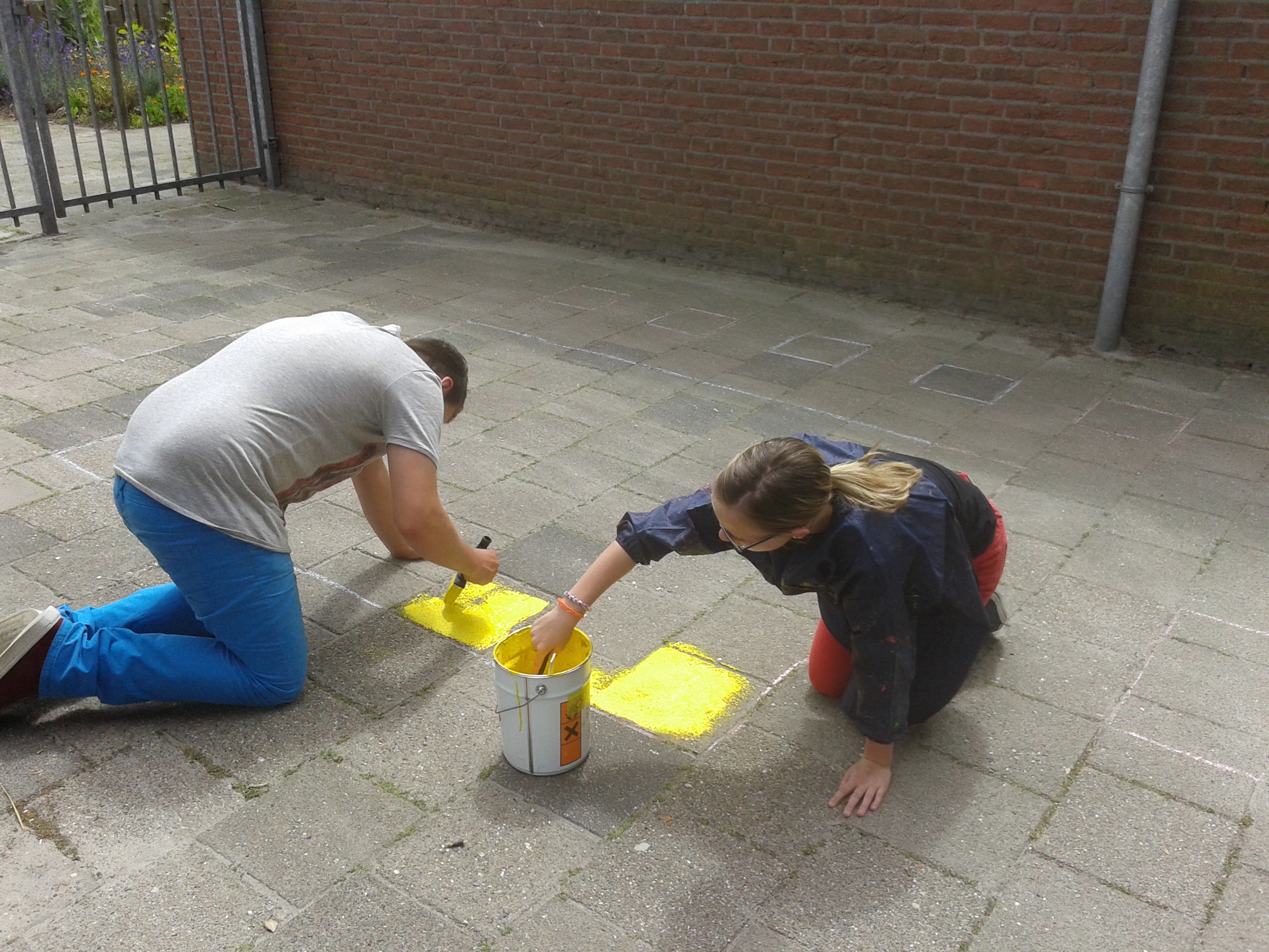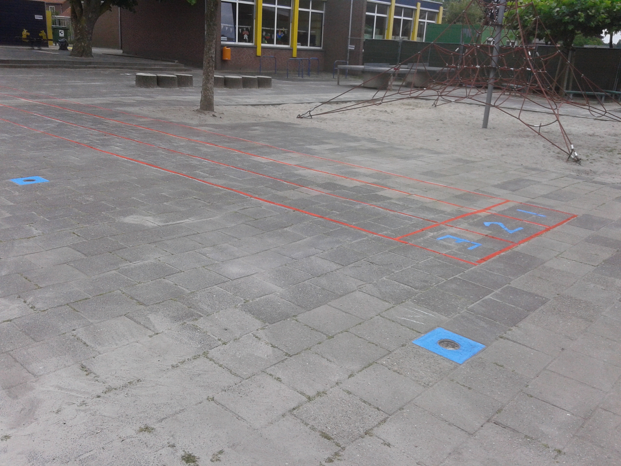 Ze hebben twee hinkelbanen, een estafette renbaan en het spel “bal in de put” op het schoolplein geverfd. Het schoolplein ziet er nu weer een stuk kleurrijker uit. De kinderen kunnen dus lekker gaan bewegen op het schoolplein. Na de verbouwing zal het schoolplein een grote metamorfose ondergaan.