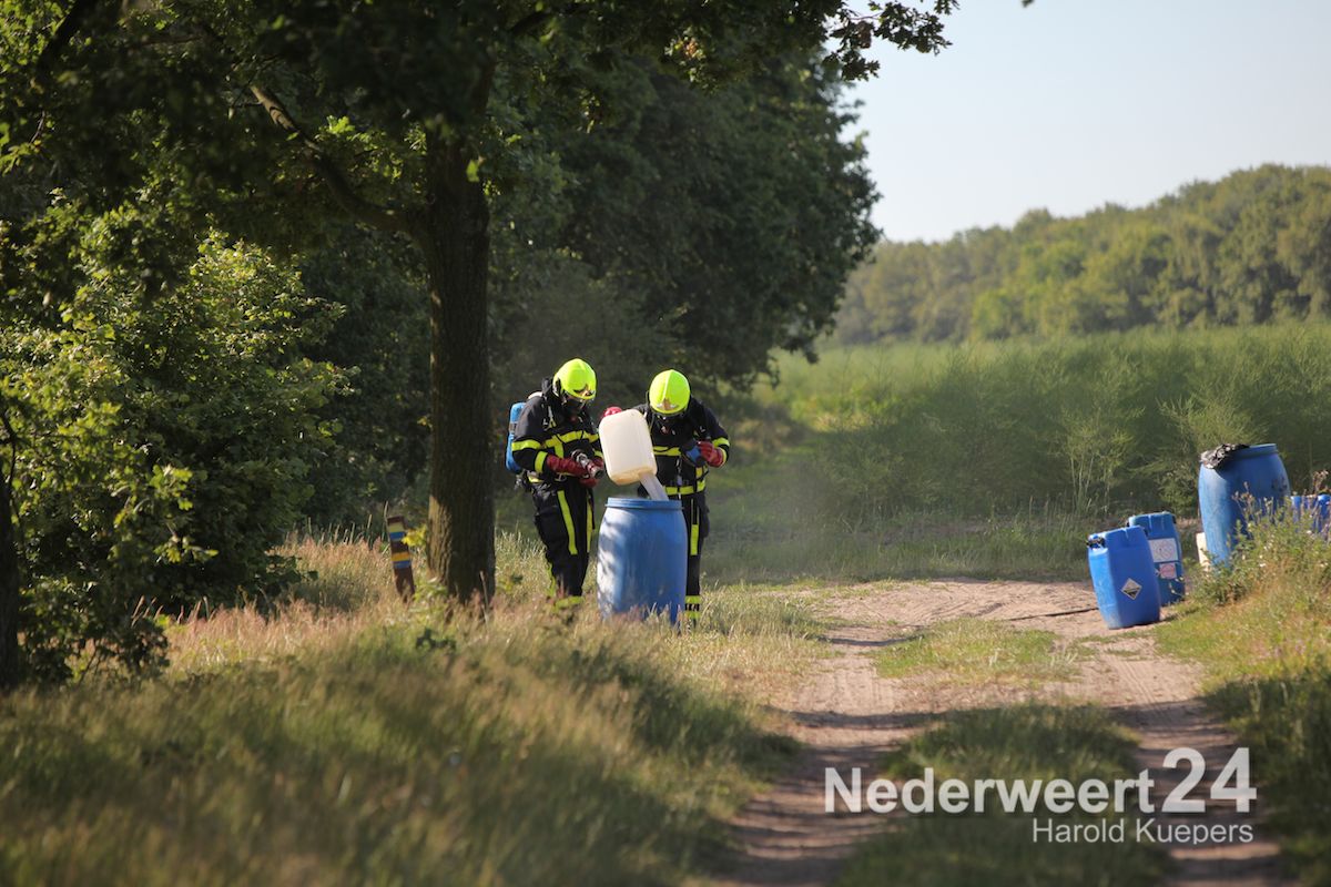 Maandagmorgen zijn er vaten met chemisch afval gevonden aan de Keutelraatweg in Weert. Van de vaten kwam rook af.