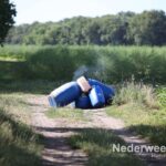 Een voorbijganger trof de vaten midden op het zandpad aan. Omdat er rook van de vaten afkwam, is de brandweer gealarmeerd. Deze heeft met ademluchtbescherming de vaten geïnspecteerd en geblust. In één van de vatten zat smeulend papier. Vermoedelijk heeft men de vaten in brand willen steken. De gemeente heeft de vaten opgeruimd.