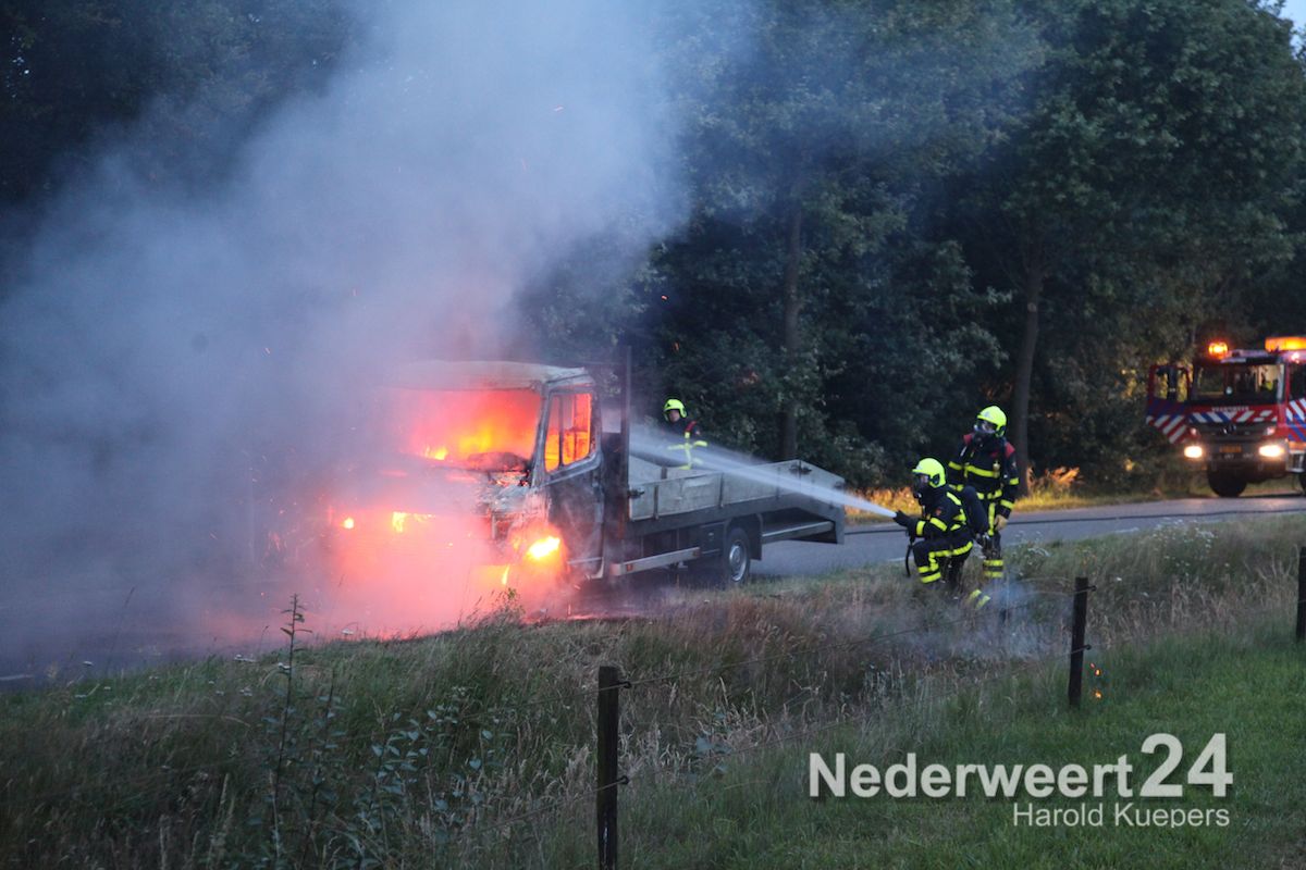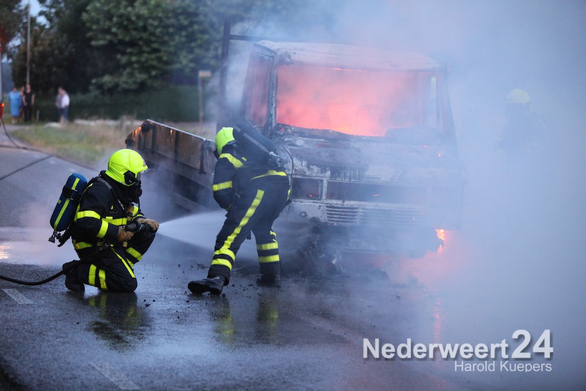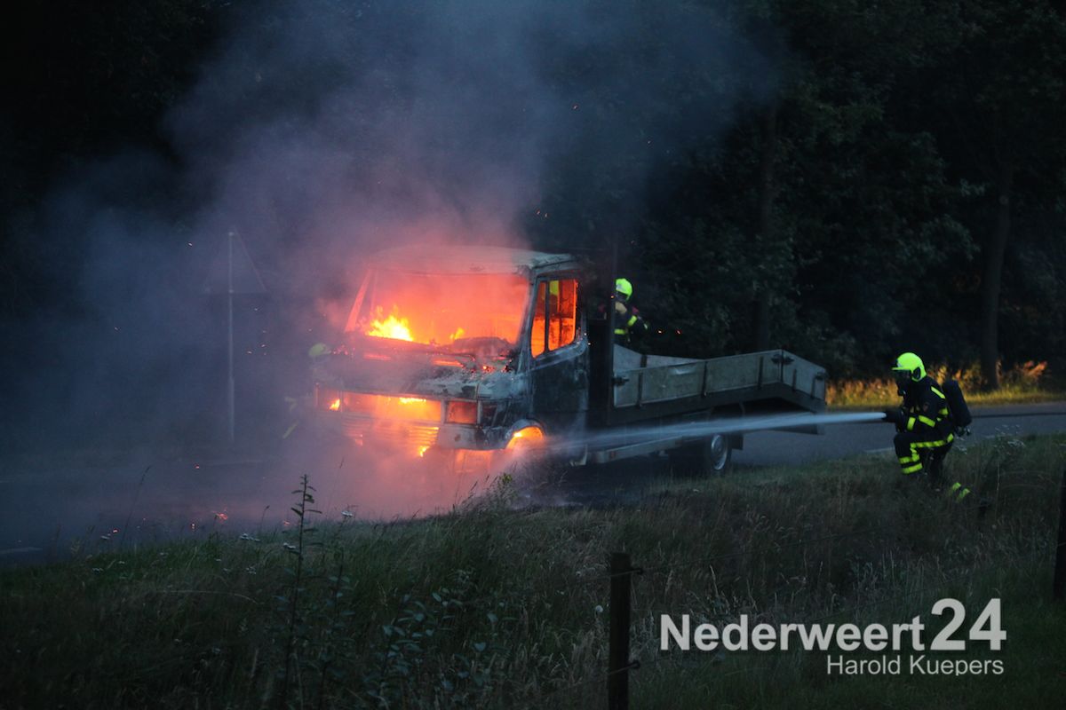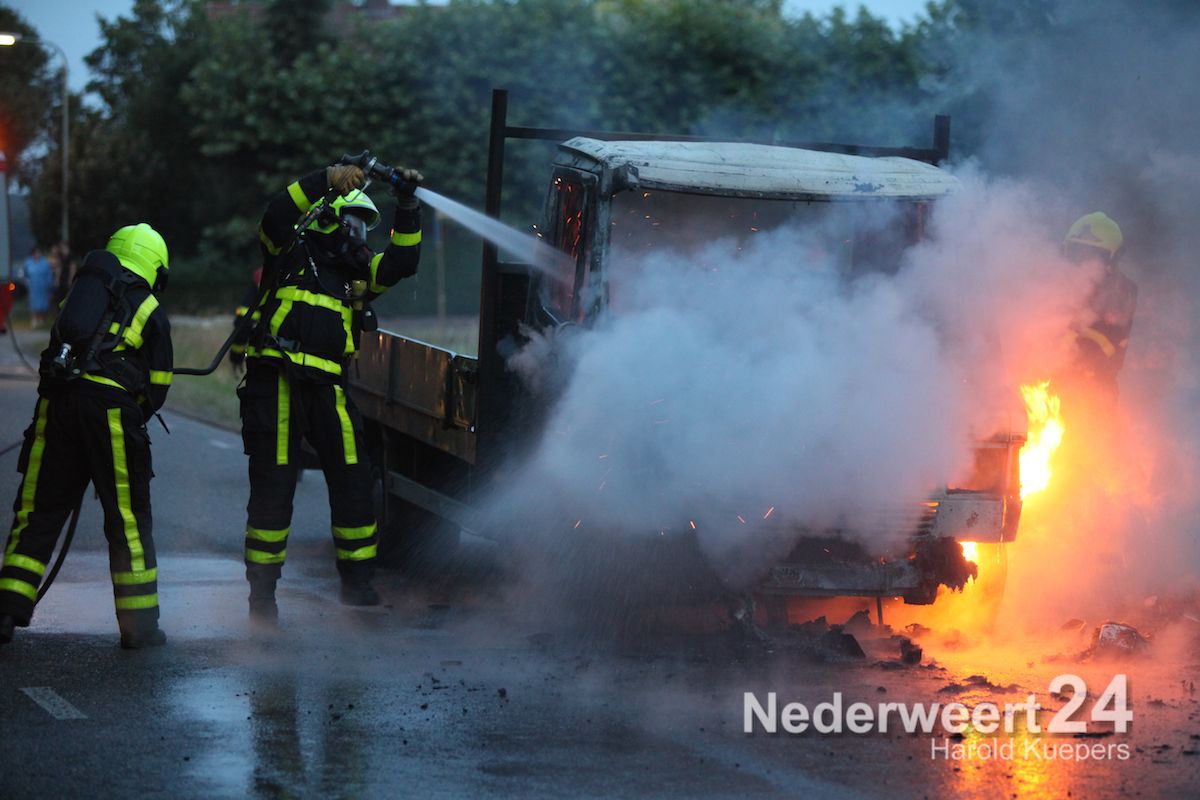 Donderdagavond is een vrachtwagentje volledig uitgebrand aan de Heide in Heythuysen. De chauffeur en de bijrijder hadden hierbij veel rook binnen gekregen.