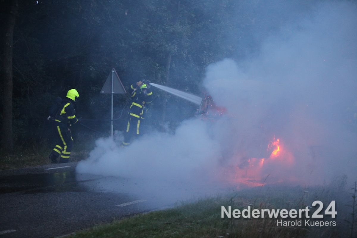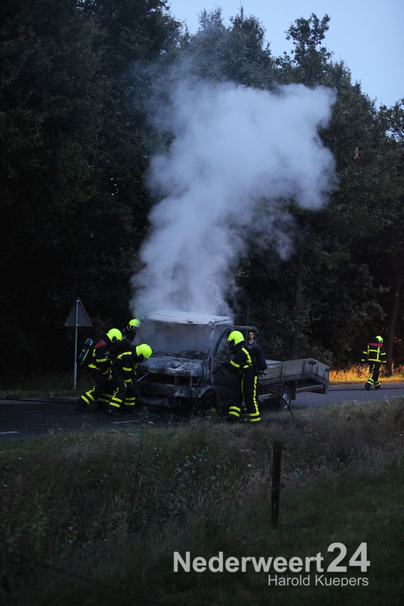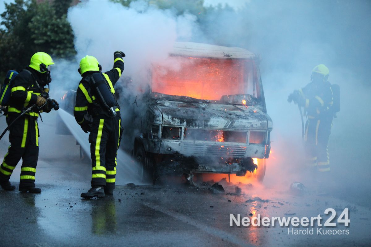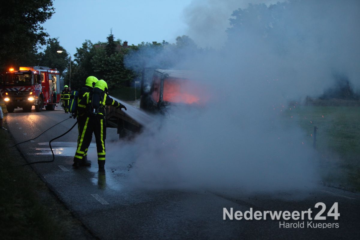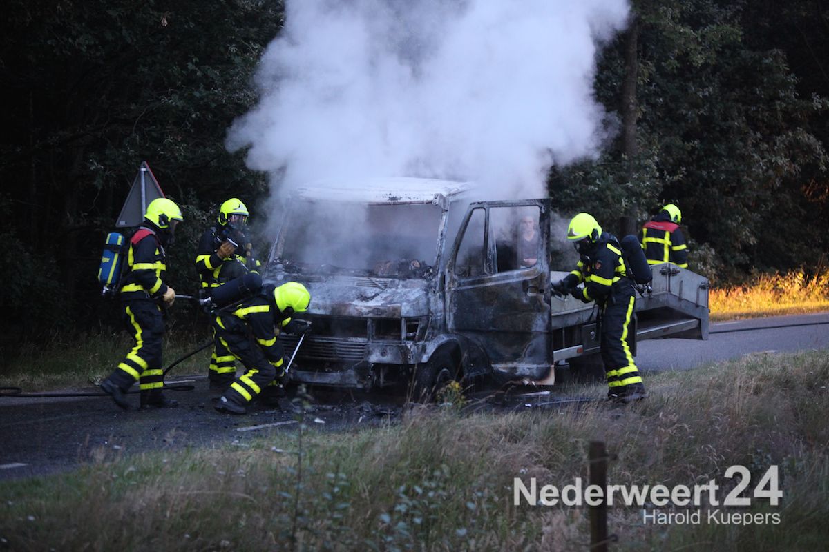 Donderdagavond is een vrachtwagentje volledig uitgebrand aan de Heide in Heythuysen. De chauffeur en de bijrijder hadden hierbij veel rook binnen gekregen.