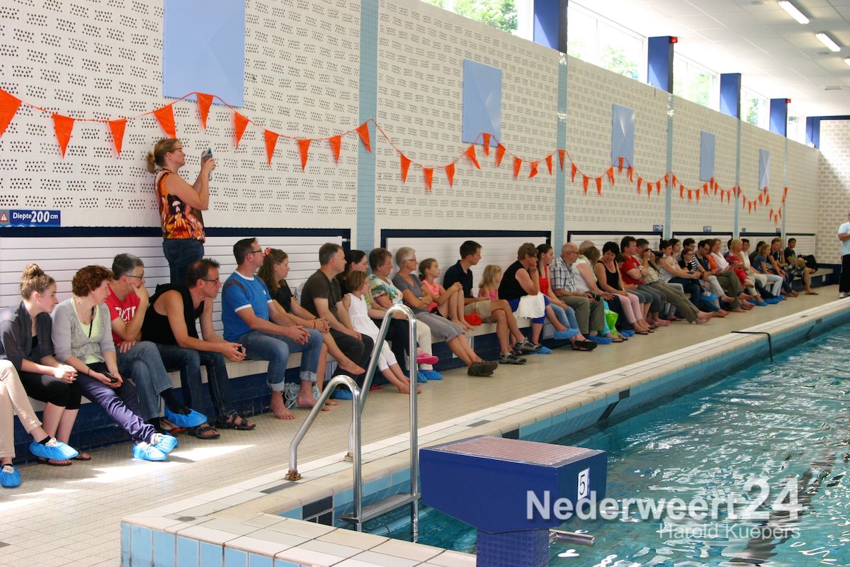 2014-06-28 Synchroonshow ZPW Nederweert 4Zwemvereniging ZPC Nederweert organiseerde zaterdagmorgen een prachtige “Synchroonzwemshow” bij Laco Sportcentrum Nederweert. Synchroonzwemmen stond vroeger bekend onder de naam ‘kunstzwemmen’. Omdat het bij het synchroonzwemmen erom gaat allerlei figuren gelijktijdig en precies op de maat van de muziek te zwemmen, is de naam ‘synchroon-zwemmen’ ontstaan. ‘Synchroon’ betekent immers ‘gelijk’.