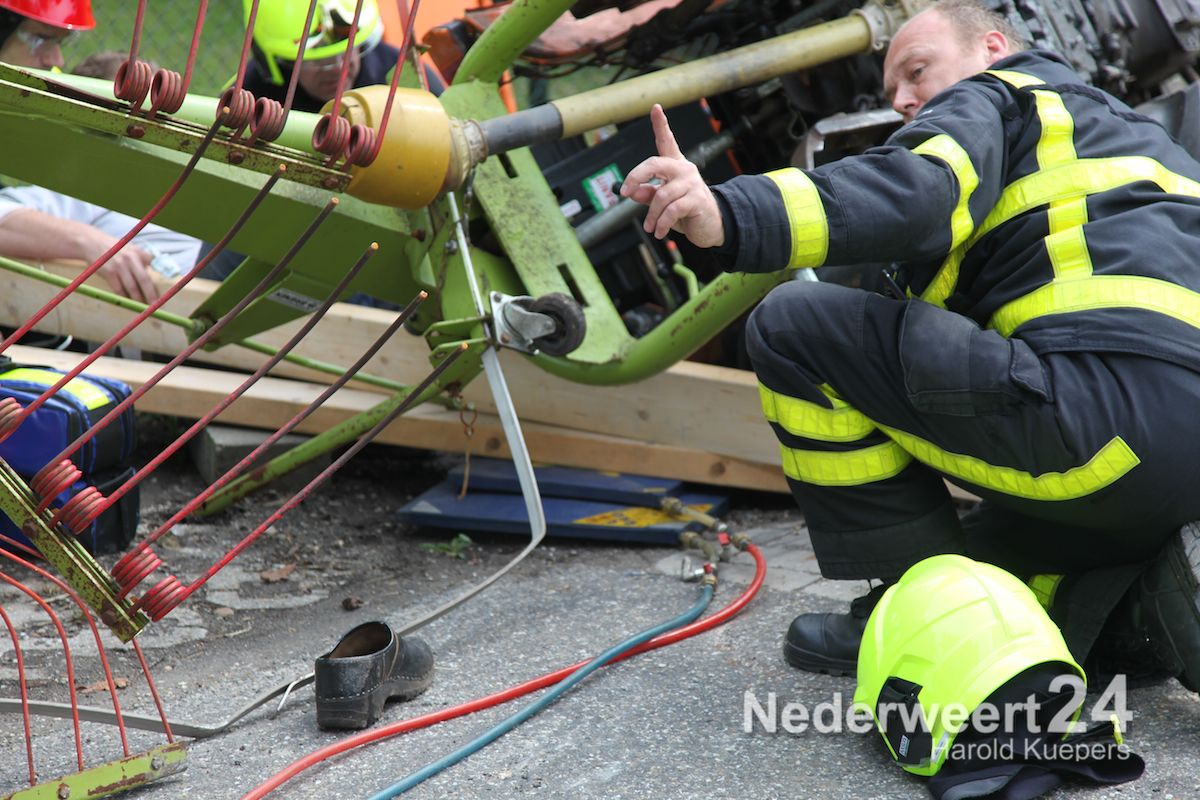 Zondagmorgen is een man met zijn voet bekneld geraakt onder een tractor. Het ongeval gebeurde op de Schinkelsweg in Ospel.