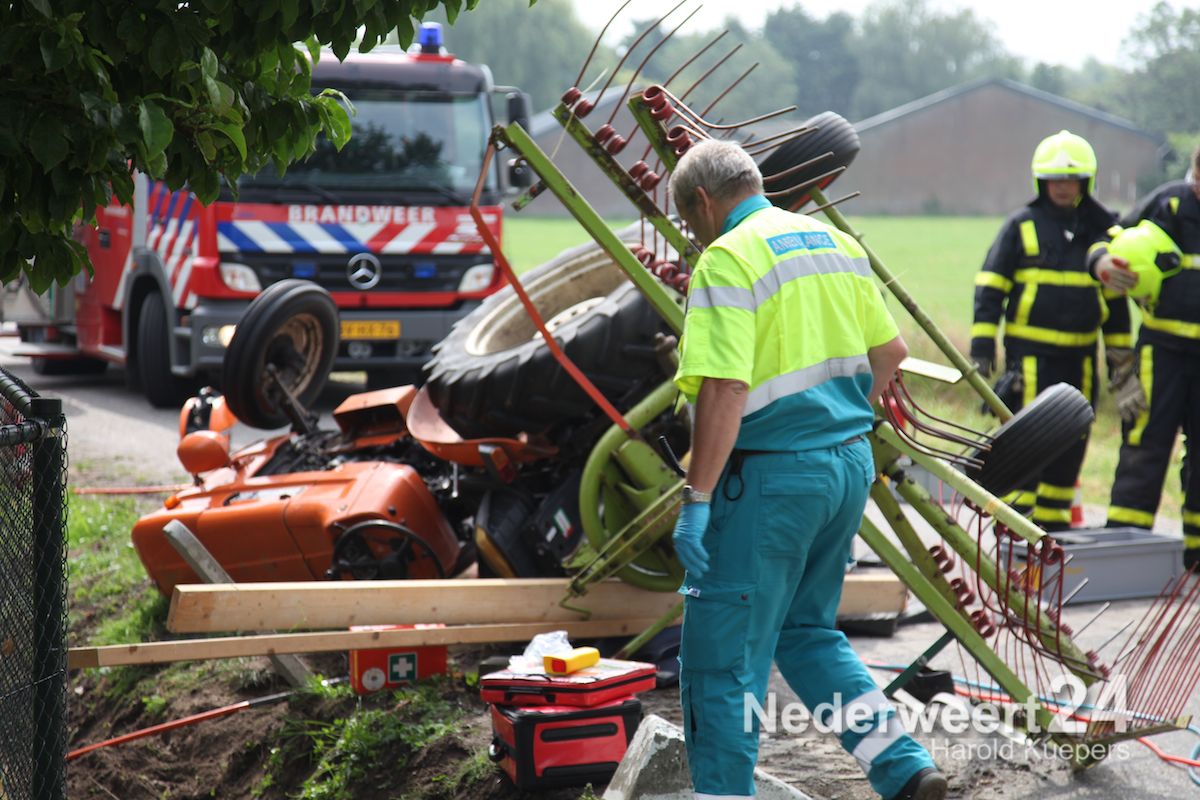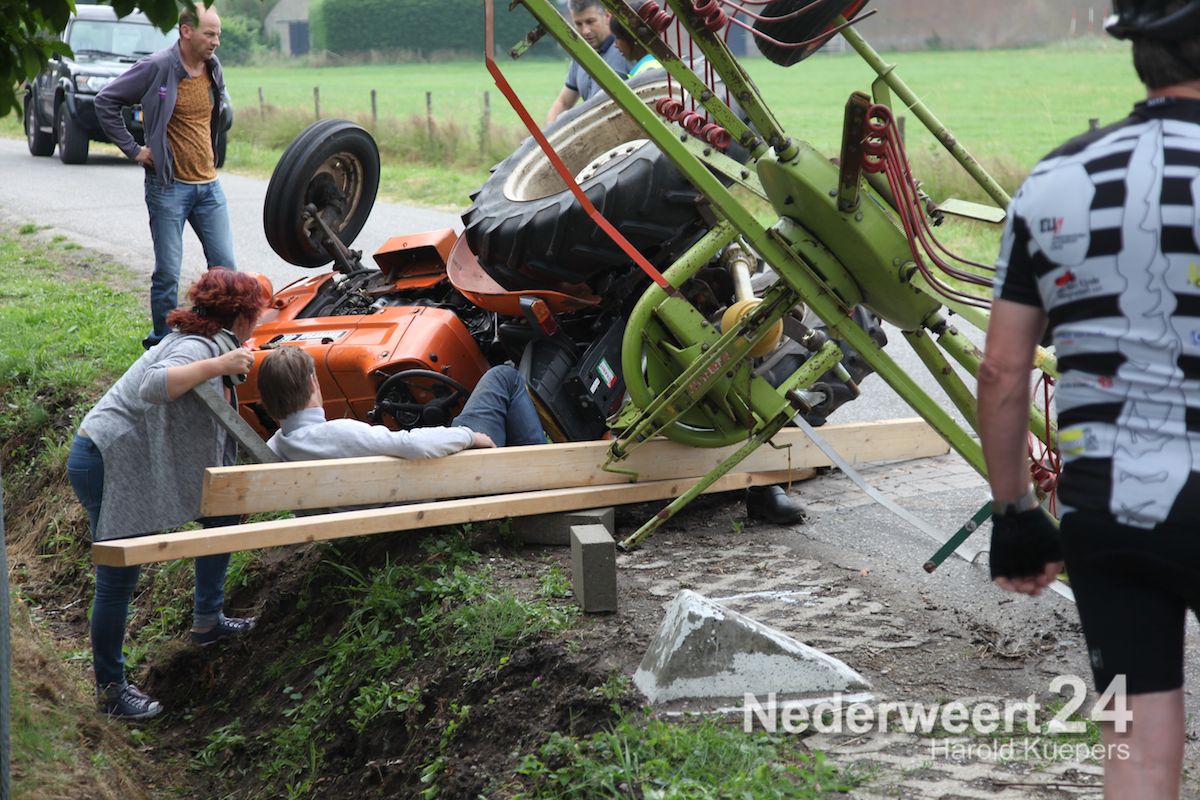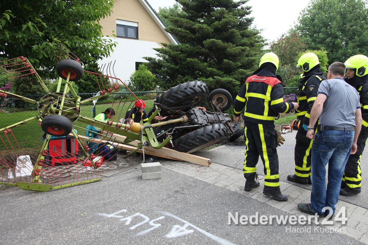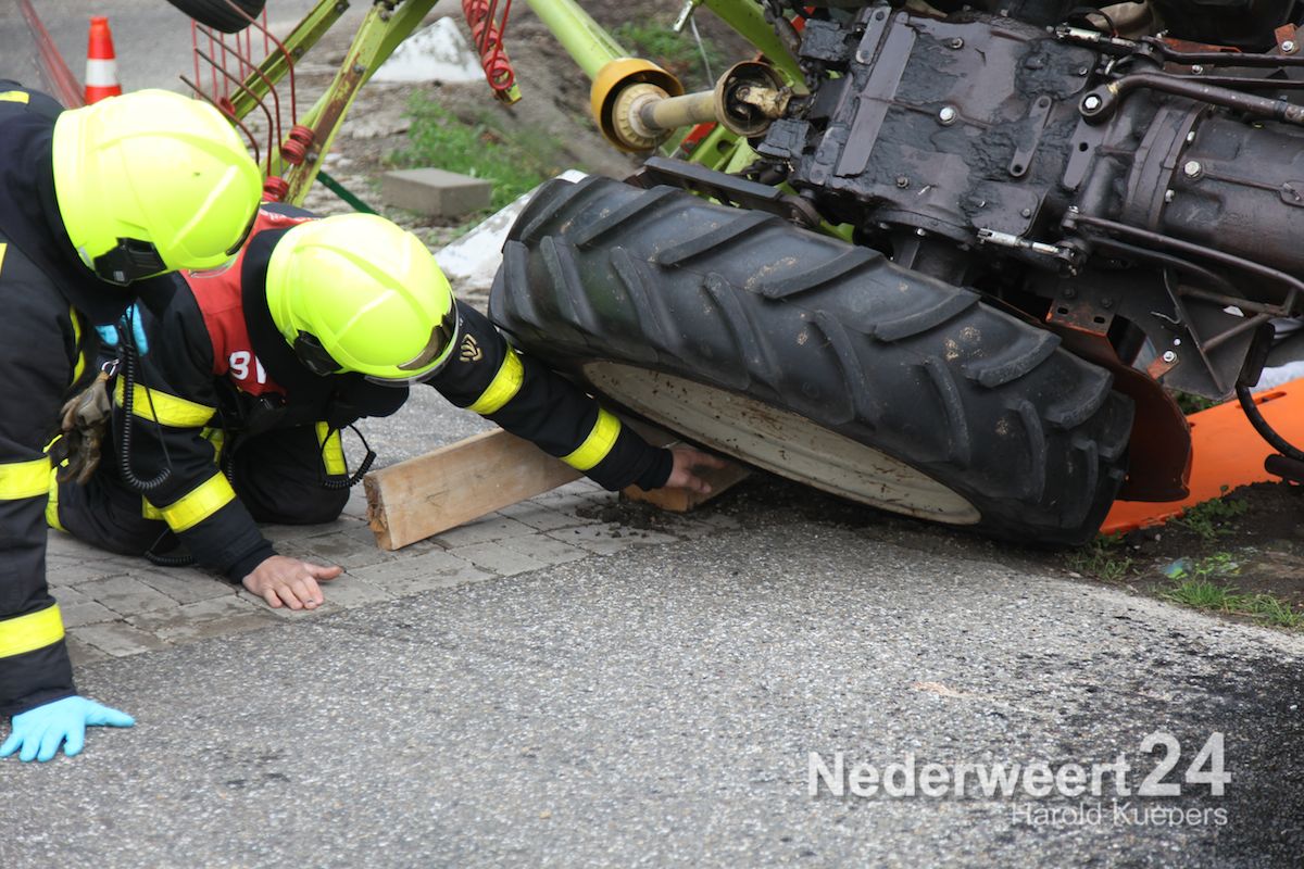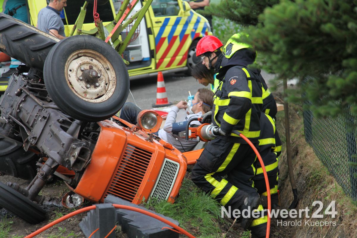 Man bekneld onder tractor