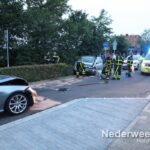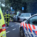 De twee auto’s zijn frontaal met elkaar in botsing gekomen ter hoogte van een wegversmalling. Een van beide auto’s heeft waarschijnlijk net voor de wegversmalling een andere auto ingehaald. Precies op de versmalling is hij frontaal op een tegemoetkomende auto gereden. De bestuurder van de tegenmoet komende auto raakte gewond is naar het ziekenhuis vervoerd. De bestuurder van de inhalende auto kwam met de schrik vrij.