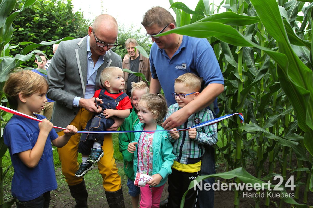 Ondanks het miezerige weer was het bij IJsboerderij Gommers in Nederweert Eind een stralende dag. Wethouder Hubert Mackus heeft vanochtend namelijk voor het tweede jaar op rij officieel de maisdoolhof geopend.