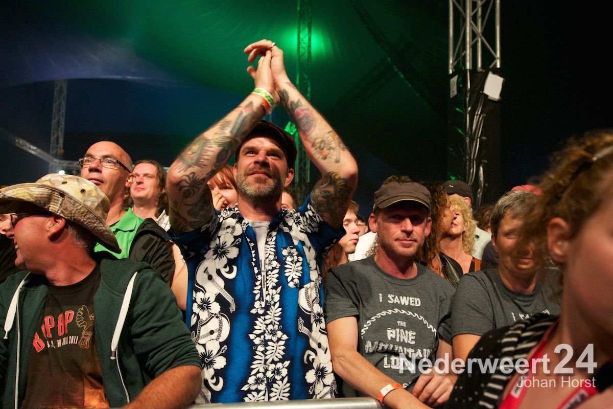 Bospop 2014, de zaterdageditie met een zompig terrein maar dat mag de pret niet drukken. Rockers zijn geen watjes en dus was het volop genieten van de vele topbands als Fun Lovin’Criminal, Heritage Blues Orchestra, Kovacs, Sven Hammond Soul, The Alarm, The Pheromones, The Straits, Venice en natuurlijk Bløf en als afsluiter de Simple Minds.