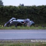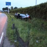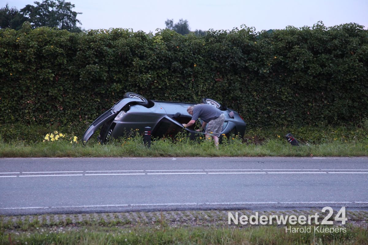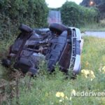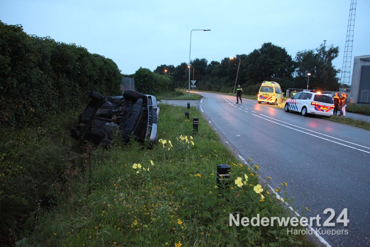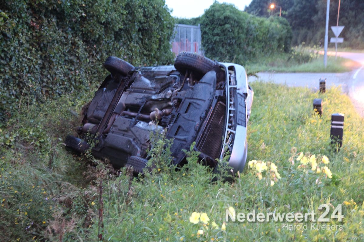 Woensdagavond is een auto over de kop in de sloot gevlogen op de Randweg West ter hoogte van Win Casino in Nederweert.