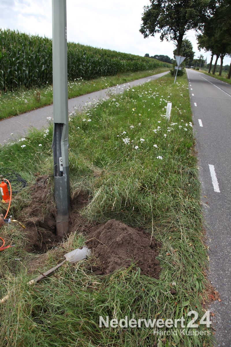 Op de Ospelseweg heeft afgelopen nacht of gisteren een ongeval plaatsgevonden waarbij de dader onbekend is gebleven. Op de T-spliting Ospelseweg – Kreijelmusweg is waarschijnlijk een auto of vrachtwagen die vanuit Ospel is gekomen hard tegen een lantaarnpaal gereden.