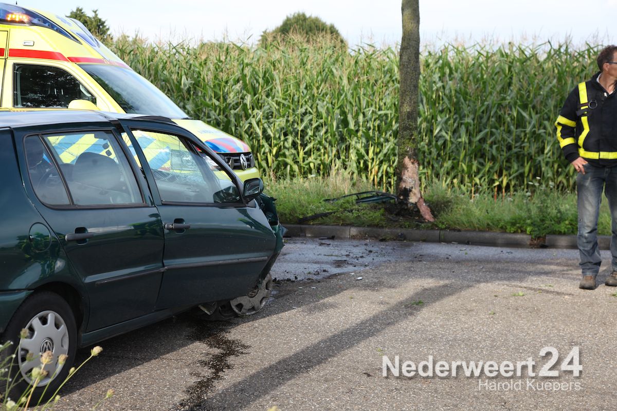 De auto reed vanuit Grathem richting Kelpen-Oler en is bij de vluchtheuvel waarschijnlijk de macht over het stuur verloren daarbij tegen een boom gebotst. De inzittenden konden zelf het voertuig verlaten. Het ambulancepersoneel heeft het tweetal onderzocht en naar het ziekenhuis in Weert vervoerd. Voor zover nu bekend waren er geen andere voertuigen bij het ongeval betrokken. De politie onderzoekt de toedracht van het ongeval.