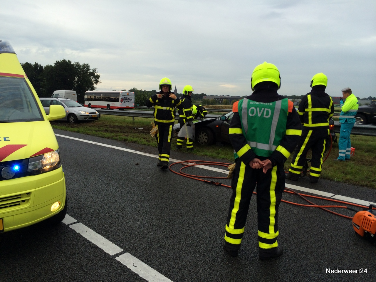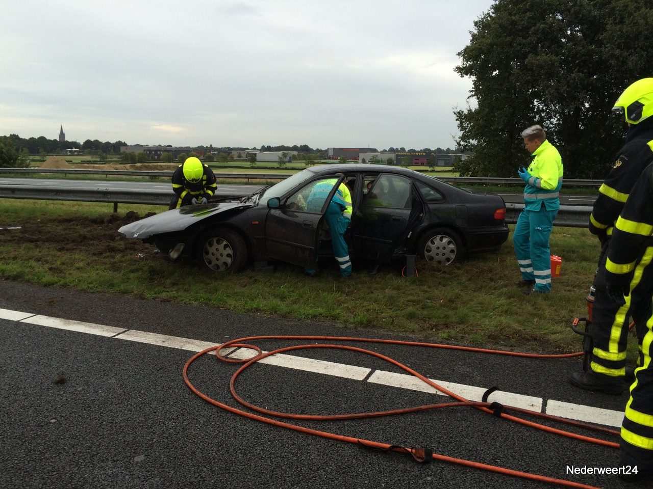 Auto in vangrail op A2-001Vrijdagmiddag rond half 6 werden de hulpdiensten gealarmeerd voor een ongeval op de A2 bij Nederweert. Op de snelweg was een automobilist in de vangrail terecht gekomen. De ambulance en brandweer waren snel ter plaatse. Ambulancebroeders hebben de bestuurster ter plekke onderzocht en zij kon op eigen kracht het voertuig verlaten.