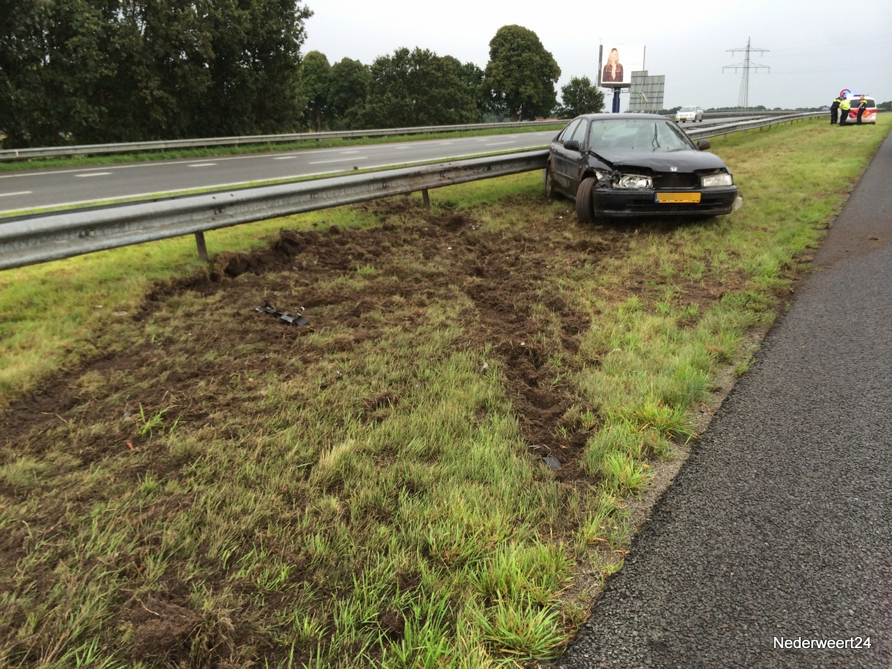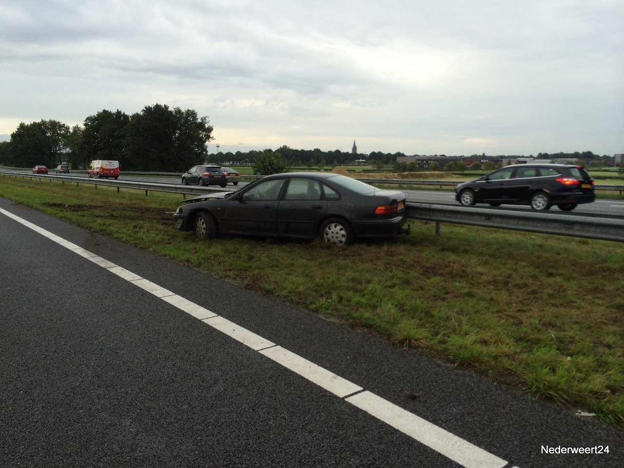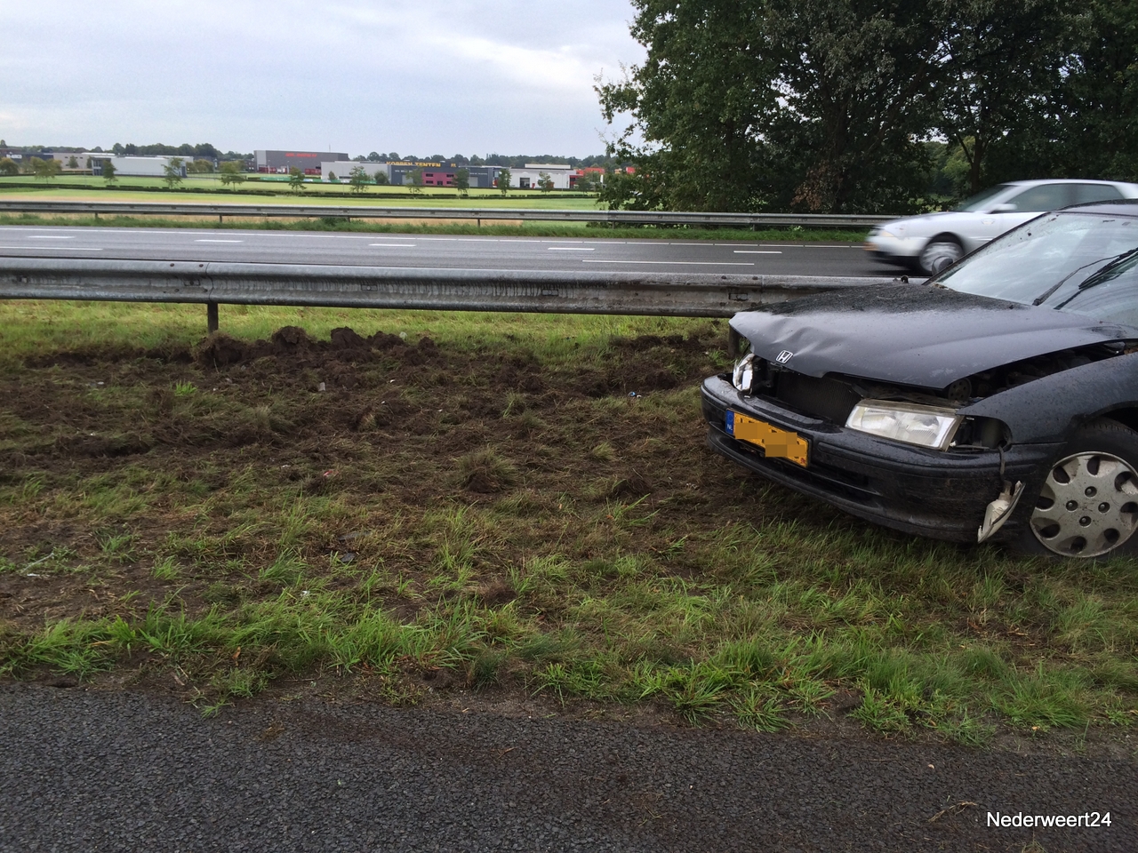 Auto in vangrail op A2