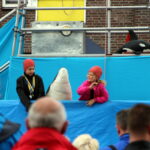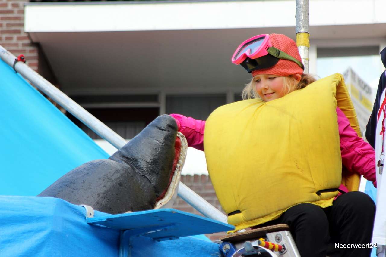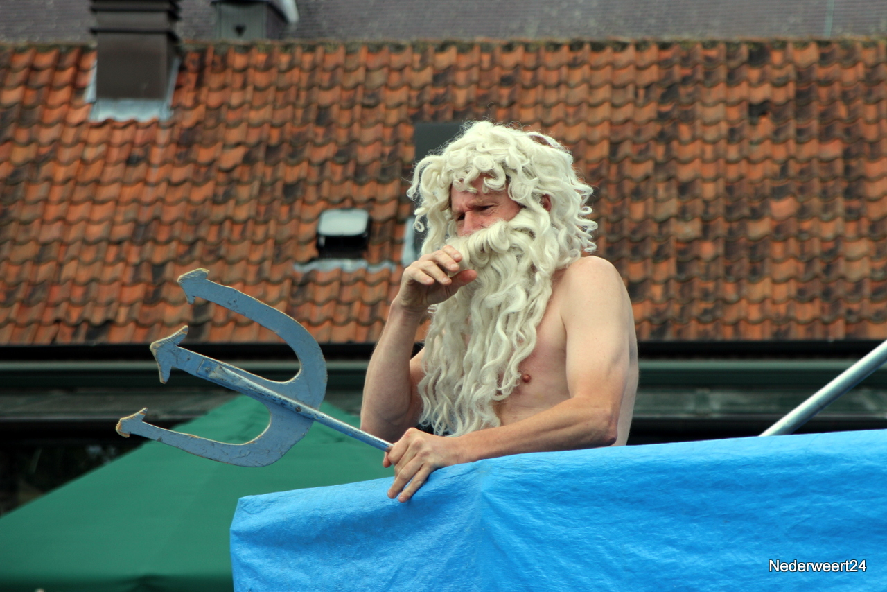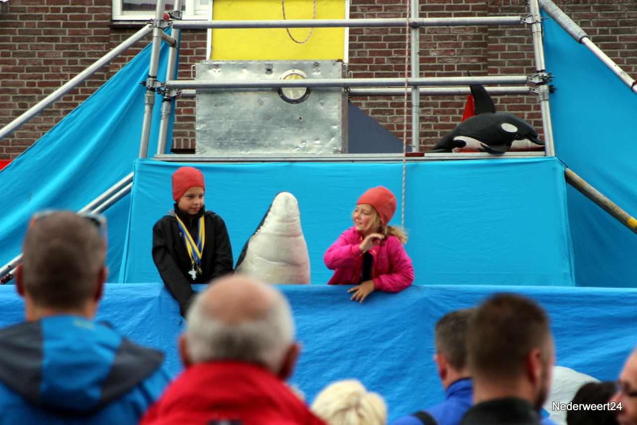 Zaterdagmiddag aansluitend aan de intocht van de wandel 4 daagse ging op het Lambertushof in Nederweert het Limburg Festival van start. Op het programma stonden vandaag 2 voorstellingen. Theatergroep Hilaria mocht met hun act Dolfinarium de spits afbijten. Zij presenteerden een circusvoorstelling met muziek, humor, vrijwilligers en schuimrubberen dolfijnen. Veel wandelaars van de 4 daagse bleven nog even op het Lambertushof waardoor het tijdens de voorstelling lekker druk was.