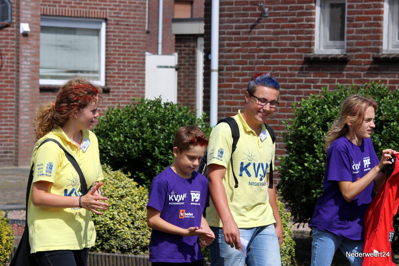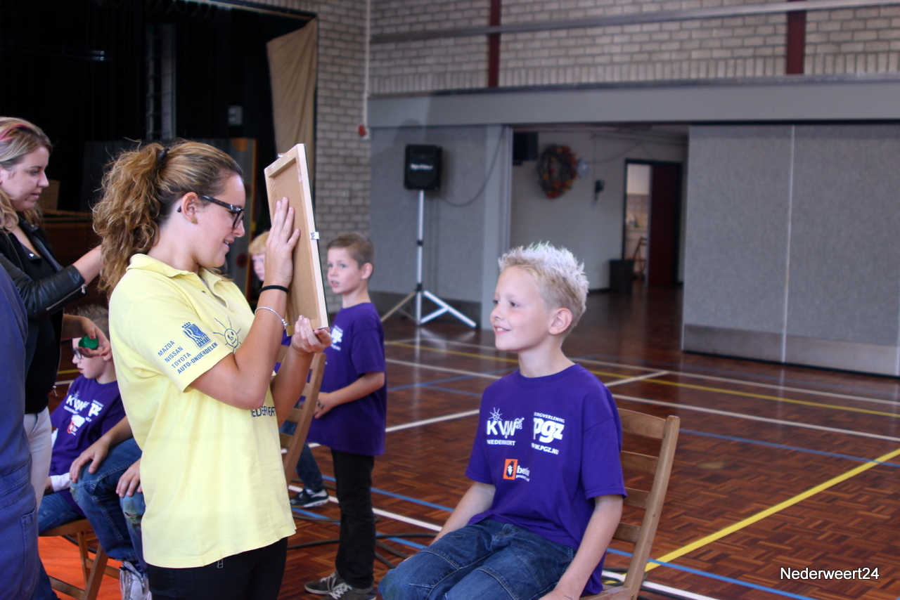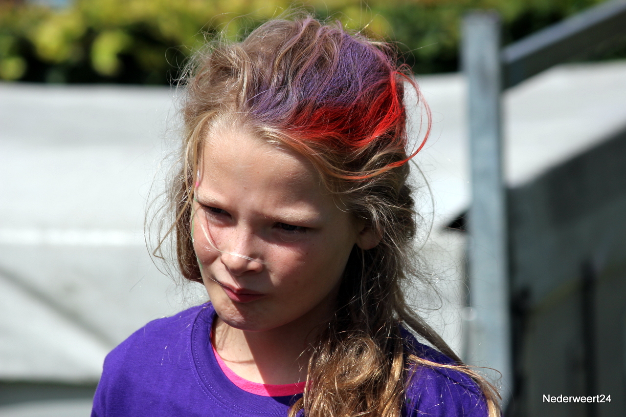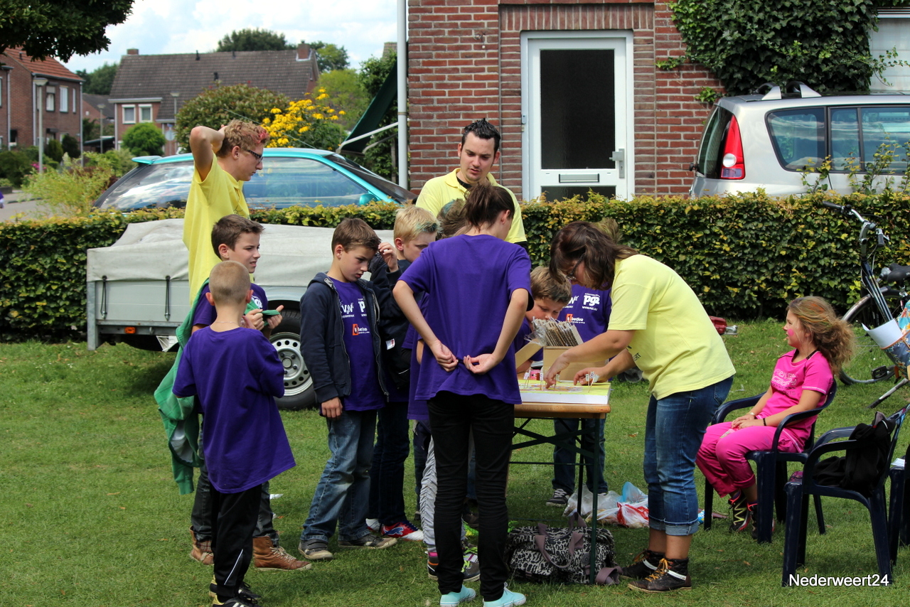 Vorige week maandag ging Kinder Vakantie Werk 2014 van start. Een week lang met elkaar spelen, knutselen en opdrachten uitvoeren. Als thuisbasis werd dit jaar voor Nederweert-Eind gekozen. Naast de Reigershorst was een tent geplaatst voor binnen activiteiten. De week begon met een nat pak voor wethouder Mackus. Op dinsdag werd er driftig geknutseld en gebouwd aan kunstwerken die later deze week tentoon gesteld worden in Nederweert tijdens de feestweek ter gelegenheid van de vernieuwde Kerkstraat. Op woensdag was het thema duidelijk “Kleurrijke haardracht”. De leiding en kinderen waren druk in de weer met gel, haarlak en kleur. Er ontstonden enkele leuke creaties, ook bij de leiding zelf.