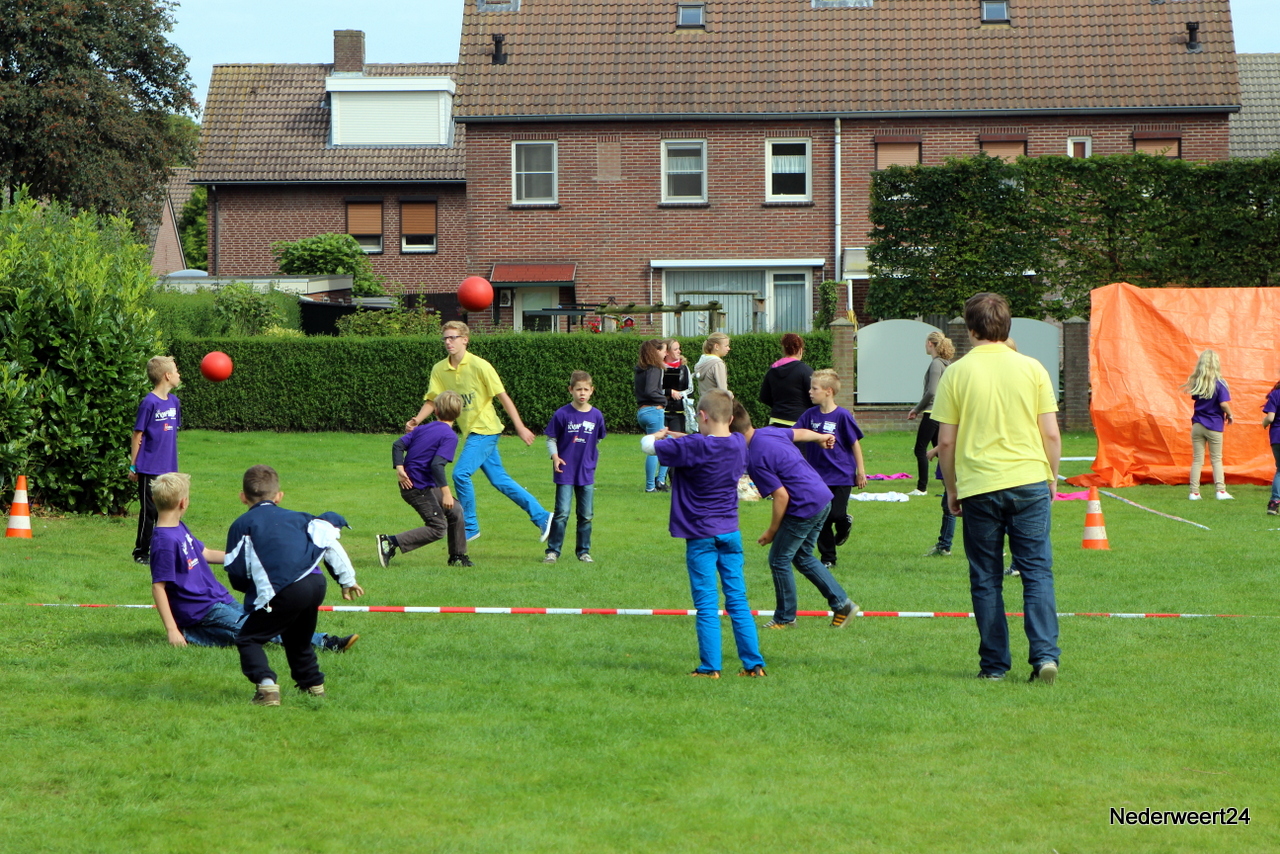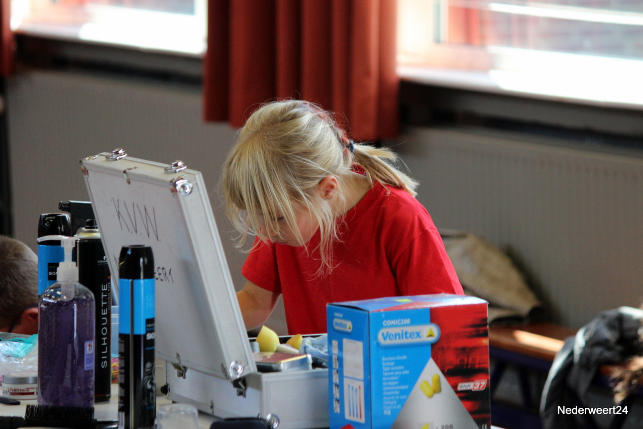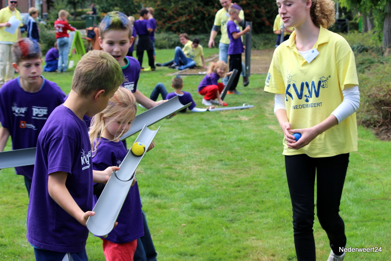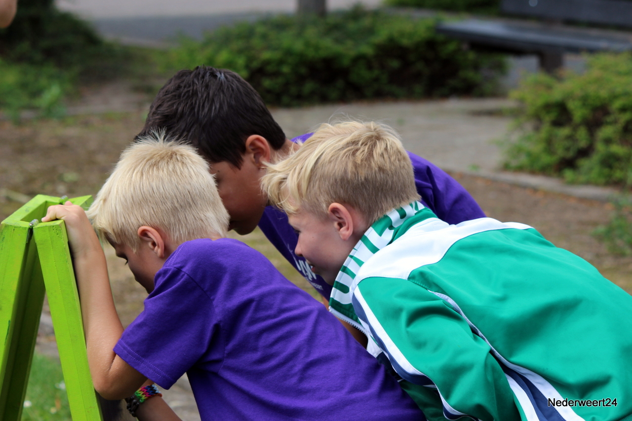 Vorige week maandag ging Kinder Vakantie Werk 2014 van start. Een week lang met elkaar spelen, knutselen en opdrachten uitvoeren. Als thuisbasis werd dit jaar voor Nederweert-Eind gekozen. Naast de Reigershorst was een tent geplaatst voor binnen activiteiten. De week begon met een nat pak voor wethouder Mackus. Op dinsdag werd er driftig geknutseld en gebouwd aan kunstwerken die later deze week tentoon gesteld worden in Nederweert tijdens de feestweek ter gelegenheid van de vernieuwde Kerkstraat. Op woensdag was het thema duidelijk “Kleurrijke haardracht”. De leiding en kinderen waren druk in de weer met gel, haarlak en kleur. Er ontstonden enkele leuke creaties, ook bij de leiding zelf.