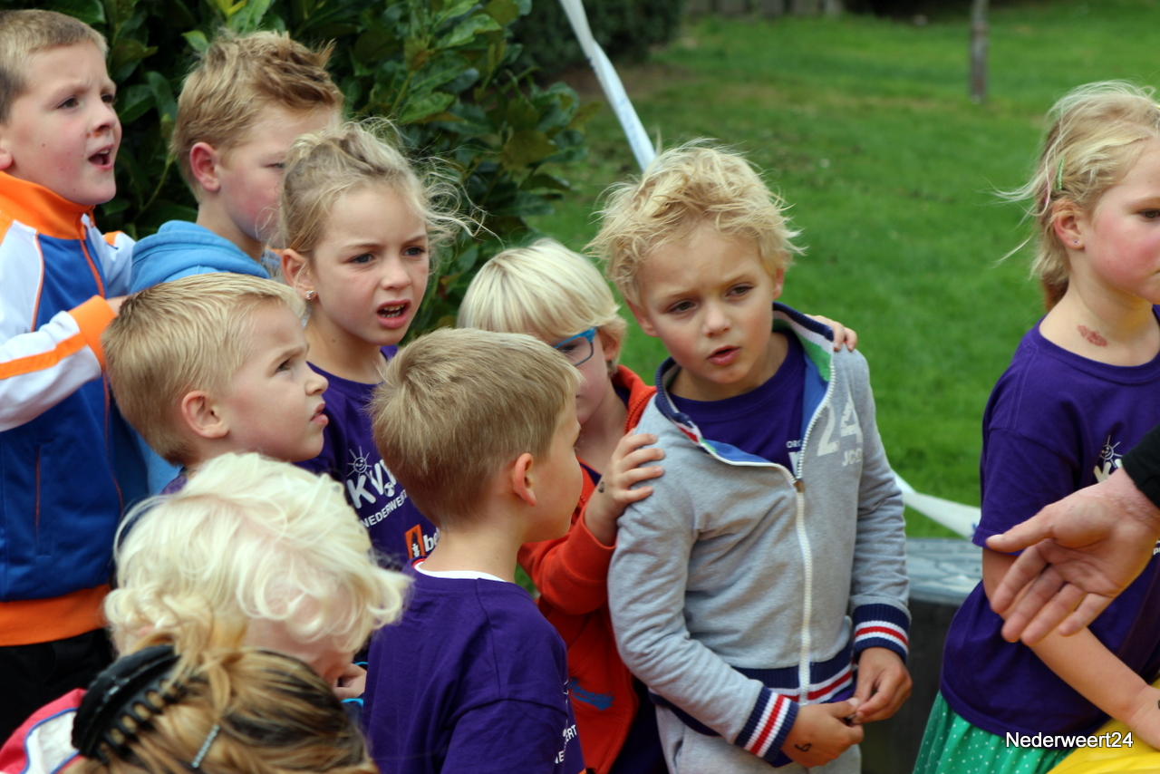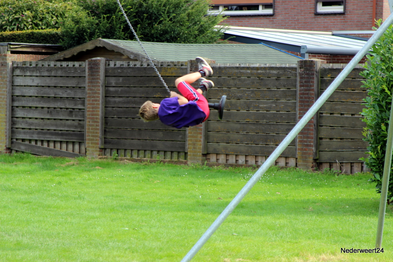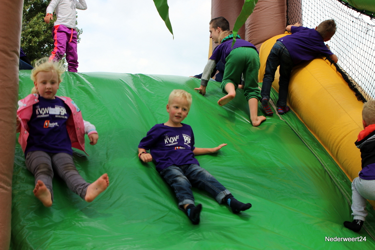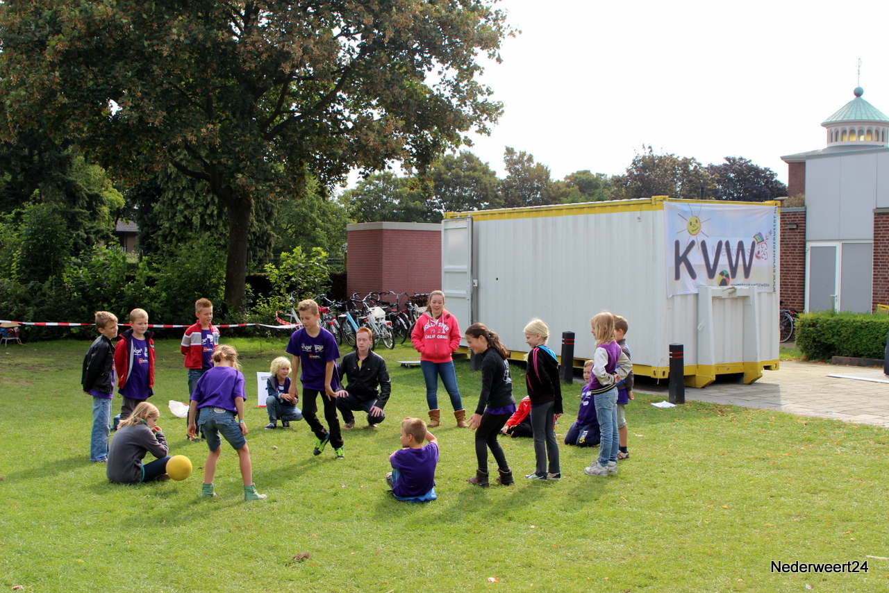 Vorige week maandag ging Kinder Vakantie Werk 2014 van start. Een week lang met elkaar spelen, knutselen en opdrachten uitvoeren. Als thuisbasis werd dit jaar voor Nederweert-Eind gekozen. Naast de Reigershorst was een tent geplaatst voor binnen activiteiten. De week begon met een nat pak voor wethouder Mackus. Op dinsdag werd er driftig geknutseld en gebouwd aan kunstwerken die later deze week tentoon gesteld worden in Nederweert tijdens de feestweek ter gelegenheid van de vernieuwde Kerkstraat. Op woensdag was het thema duidelijk “Kleurrijke haardracht”. De leiding en kinderen waren druk in de weer met gel, haarlak en kleur. Er ontstonden enkele leuke creaties, ook bij de leiding zelf.