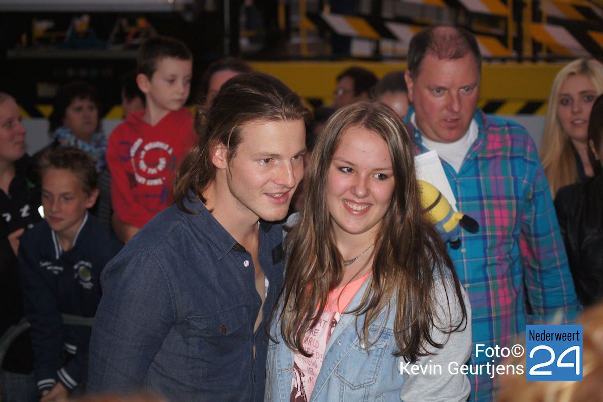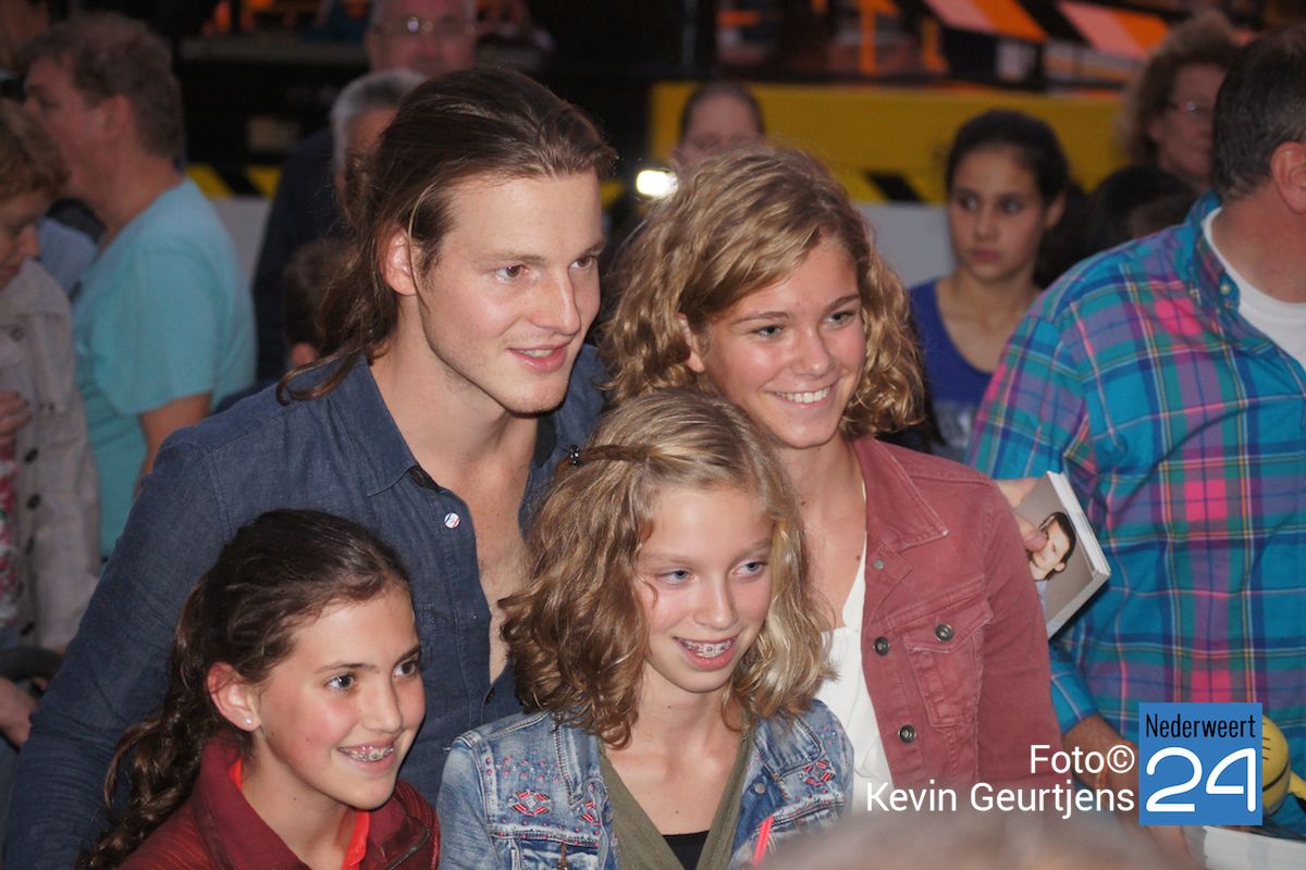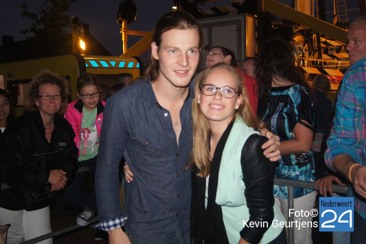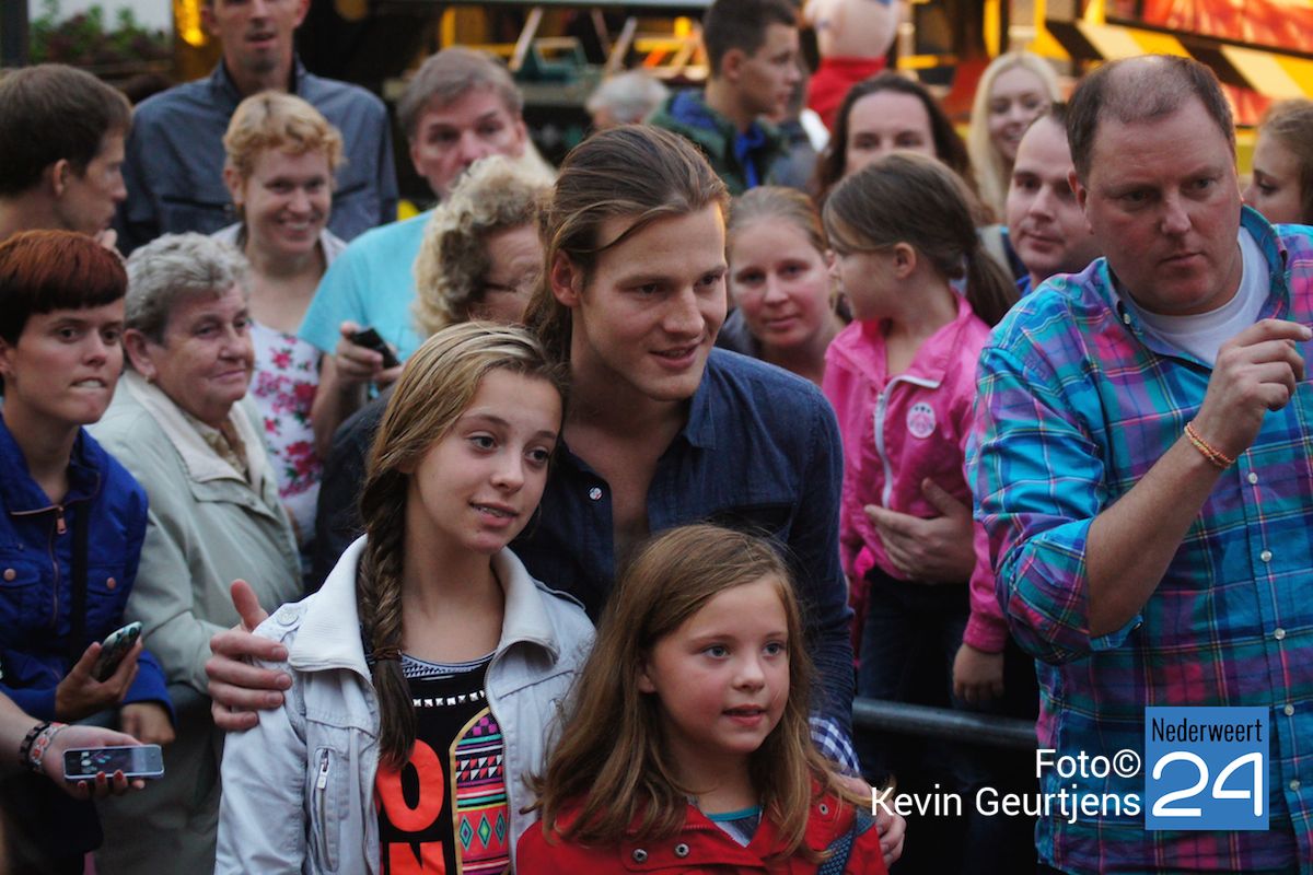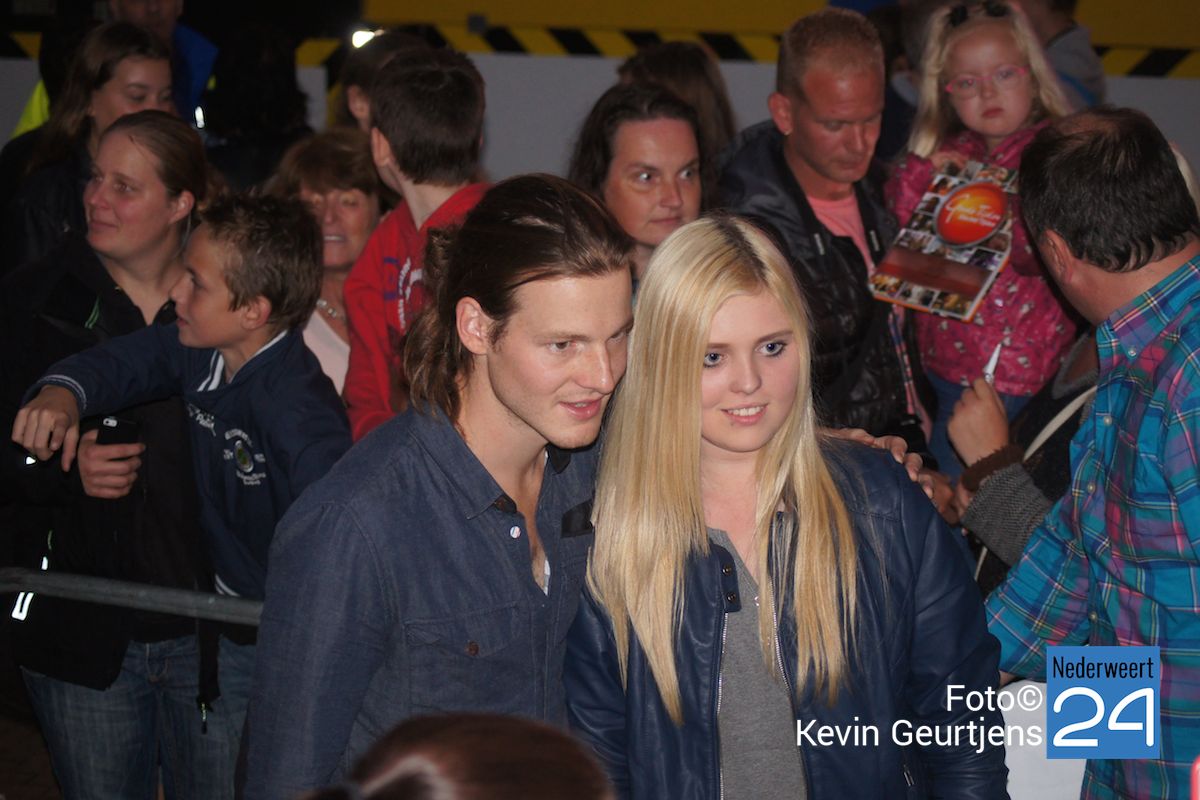 De aankondiging zorgt altijd voor een toestroom van mensen en vooral jeugdige dames die dolgraag een handtekening en op de foto willen met deze “hunk”. Gezellige drukte op de laatste dag van de succesvolle kermis in Nederweert.