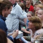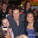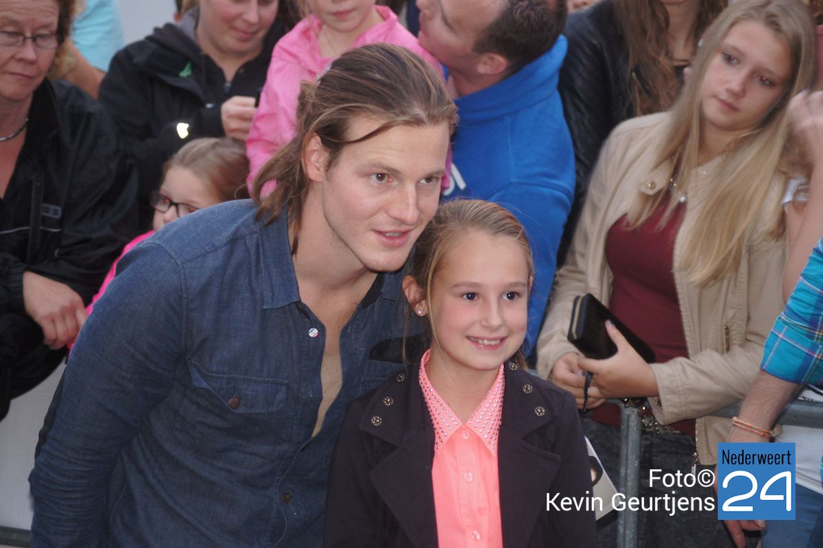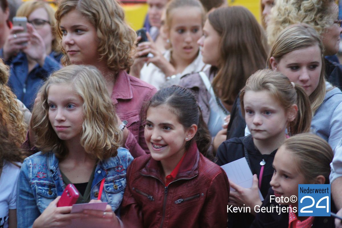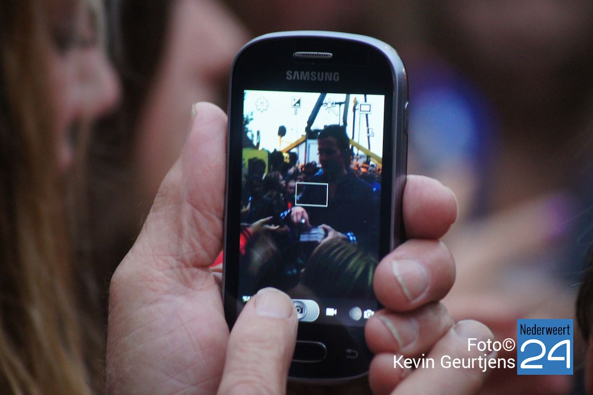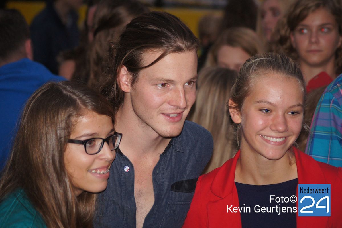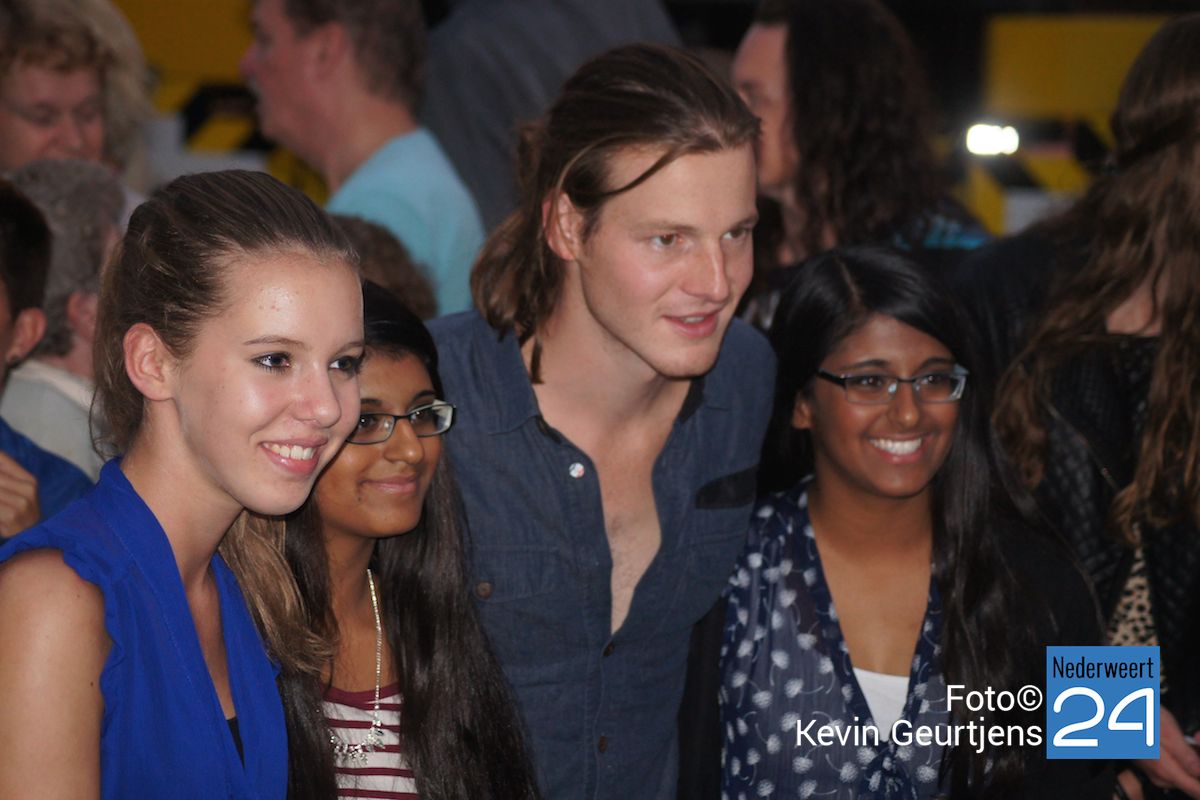 De aankondiging zorgt altijd voor een toestroom van mensen en vooral jeugdige dames die dolgraag een handtekening en op de foto willen met deze “hunk”. Gezellige drukte op de laatste dag van de succesvolle kermis in Nederweert.