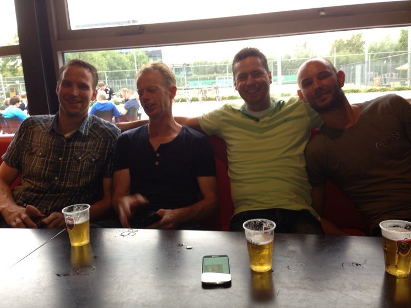 Een mooie podiumplaats op dit sterke toernooi en daarmee een evenaring van het resultaat van vorig jaar. Op de foto de heren die vandaag dit toernooi speelden en de gewonnen trofee.