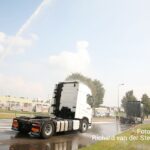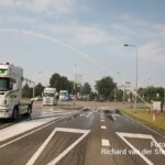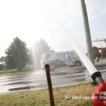 De brandweer had een speciale water(ere)haag gemaakt voor de bijrijders van de Truckrun. Op de Pannenweg reden alle trucks door een heuse waterboog die door brandweervrijwilligers uit Weert was opgezet.