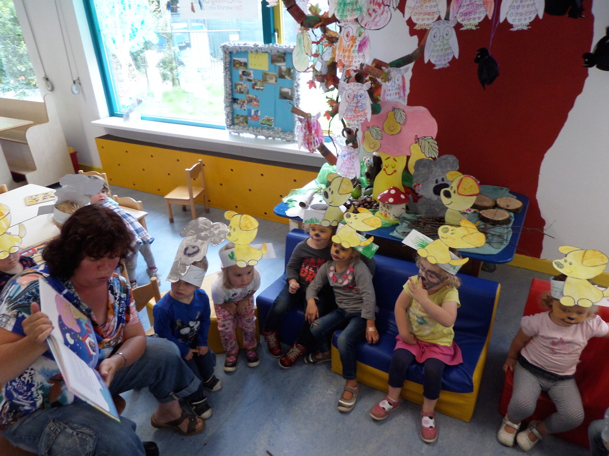 Op de foto’s kun je zien dat de peuters vol aandacht hebben geluisterd naar het spannende verhaal met hun zelfgemaakte Woezel en Pip-kroon.