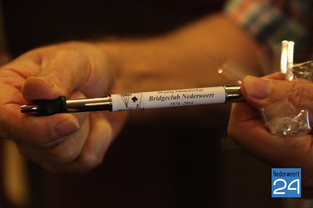 Zaterdagmiddag werd in Zaal Centraal het 40-jarig bestaan van Bridgeclub Nederweert gevierd met een ware “Jubileumdrive”. Chris Frerker, voorzitter van B.C. Nederweert 23001, opende de feestelijke bijeenkomst met felicitaties aan alle leden. Een speciaal woord van welkom was er voor de bestuursleden van het district.