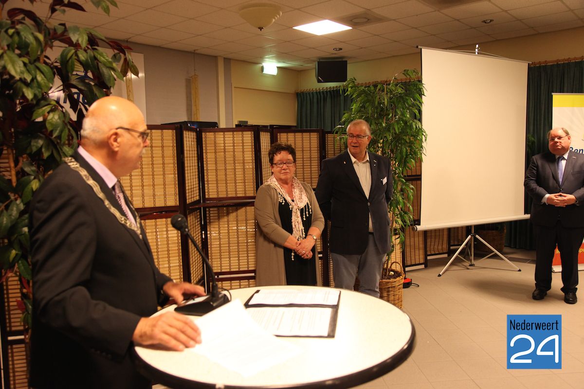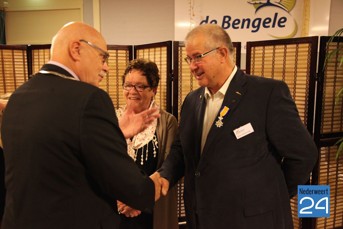Koninklijke onderscheiding voor Ron Hillebrink uit WeertZondagmiddag heeft burgemeester Evers van Nederweert de versierselen uitgereikt die behorende bij de benoeming tot Lid in de Orde van Oranje-Nassau aan de heer Ron Hillebrink (70 jaar) uit Weert. De uitreiking vond plaatst tijdens de viering van het 50-jarig jubileum van Veilig Verkeer Nederland afdeling Nederweert in het sportcentrum van Nederweert.