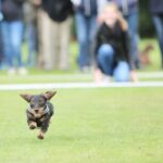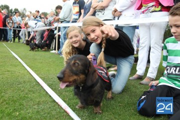 Net als vorig jaar deden er ongeveer 120 teckels mee aan de “run der runs” in de wereld der professionele hondensport. Een parcours van 30 meter moest zo snel mogelijk worden afgelegd om de winnaars-trofee te kunnen bemachtigen. Aan de ene kant een baasje die de teckel vast hield tot het fluit signaal klonk en aan de andere kant een baasje waar het hondje zo snel mogelijk naartoe moesten rennen. Tenminste, als alles goed ging…..