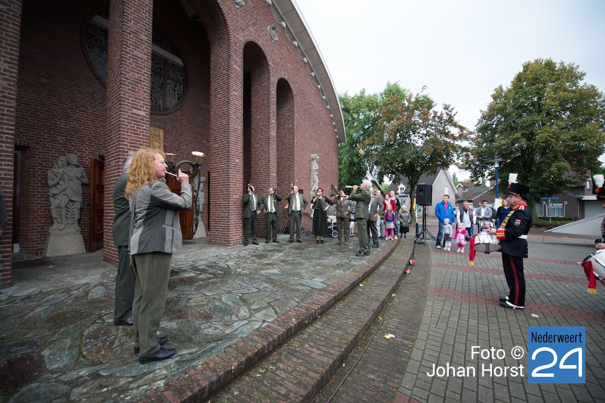 Het college van B & W en vele andere genodigden waren aanwezig tijdens de feestelijke kerkdienst en brunch die werd opgeluisterd door Eindse muziekgezelschappen. Ondanks het slechtere weer ’s morgens klaarde het weer snel op en was het een geslaagde en gezellige dag.