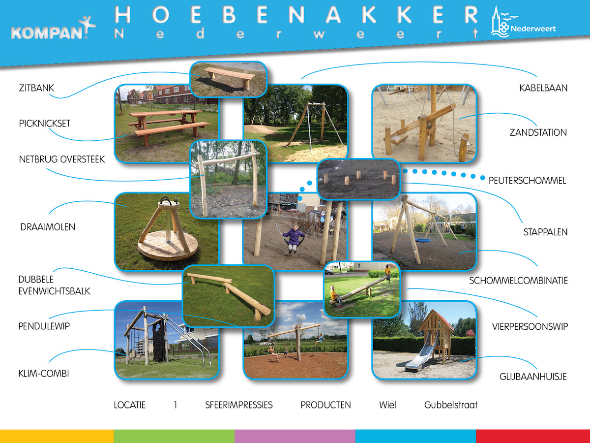 Aanleg speelveldjes HoebenakkerWoonwijk Hoebenakker is momenteel grotendeels bebouwd en bewoond. De wegen en trottoirs zijn aangelegd en veel beplanting is aangeplant. Tijd om de speelterreintjes in te richten. In overleg met een werkgroep van bewoners heeft de gemeente een plan opgesteld.