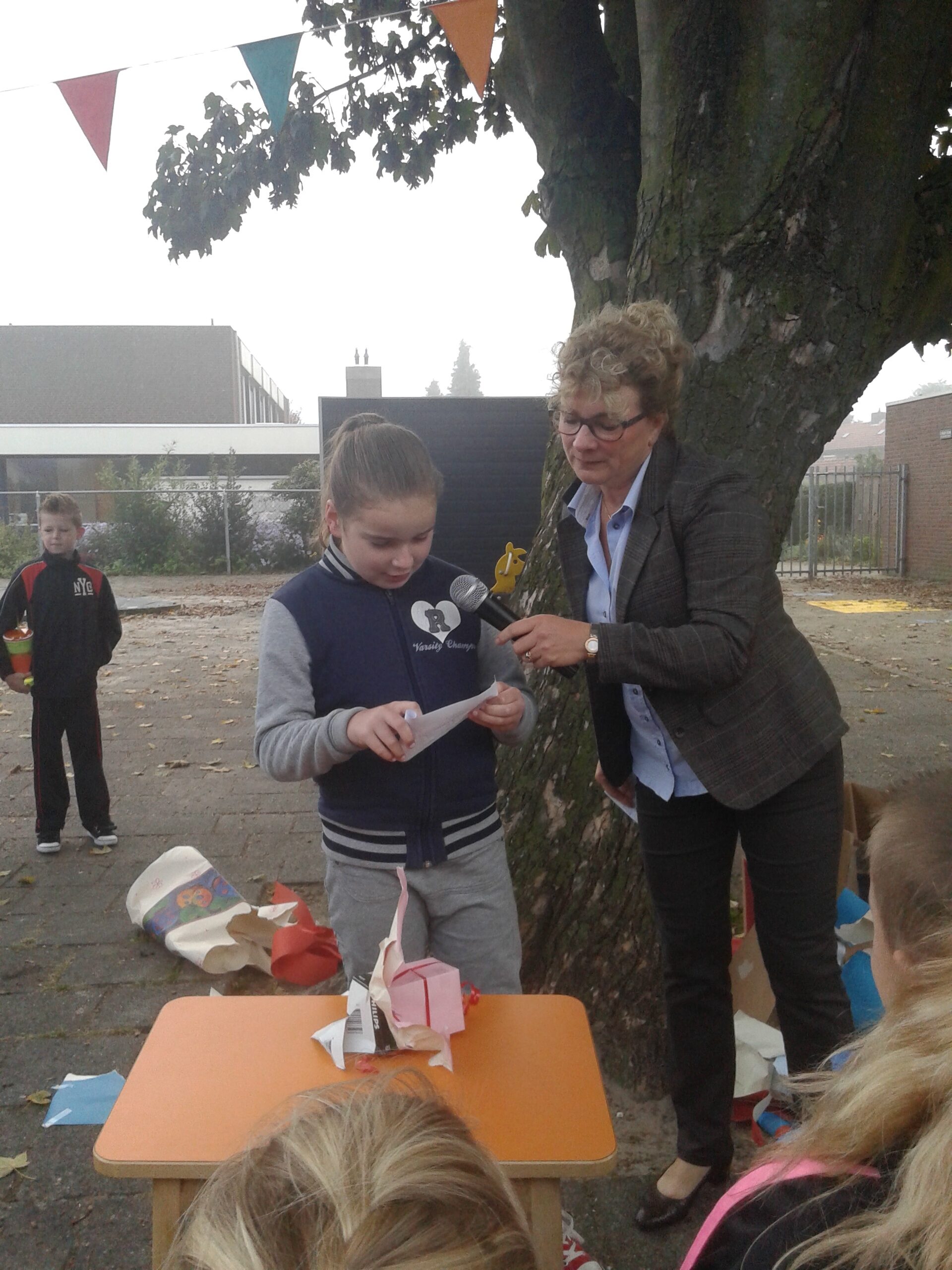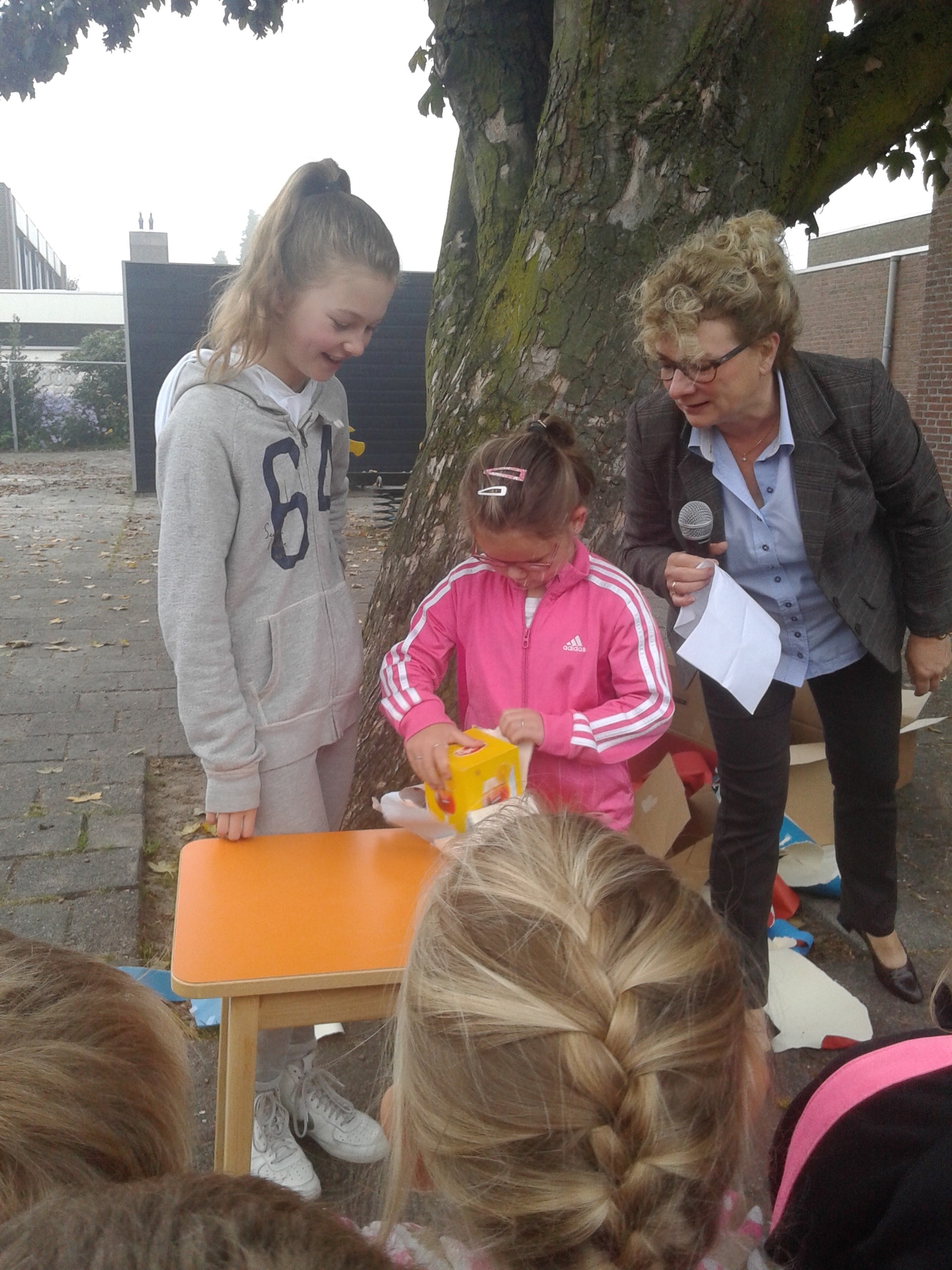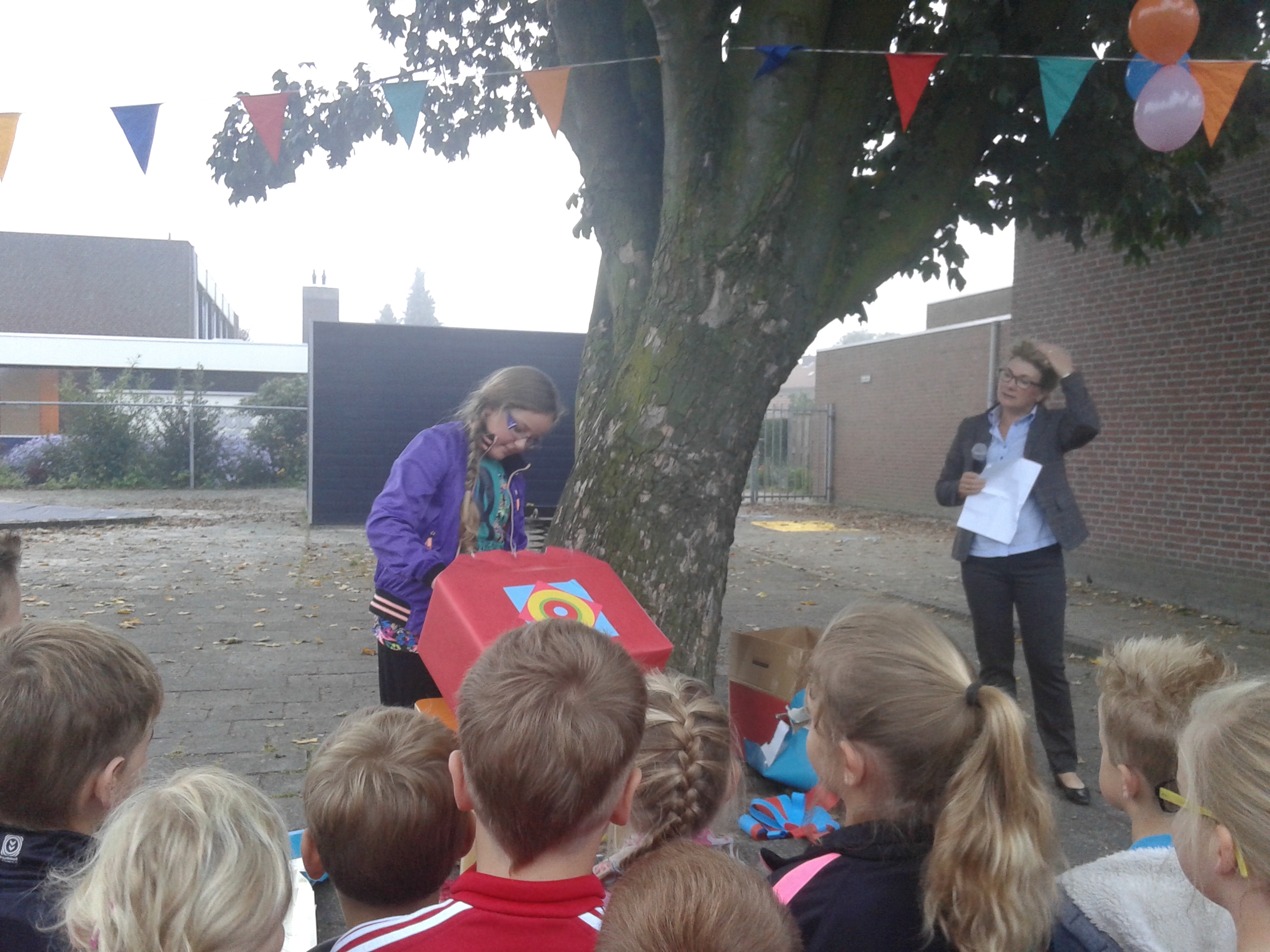 Basisschool Budschop heeft vanmorgen op feestelijke wijze, net als OBS de Klimop, de “Kinderboekenweek” geopend. Op het plein stond een groot cadeau en een kinderboekenvraag. Alle kinderen stonde rondom het grote cadeau.
