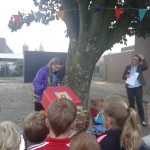 Opening Kinderboekenweek BS Budschop6Basisschool Budschop heeft vanmorgen op feestelijke wijze, net als OBS de Klimop, de “Kinderboekenweek” geopend. Op het plein stond een  groot cadeau en een kinderboekenvraag. Alle kinderen stonde rondom het grote cadeau.