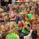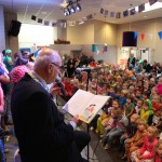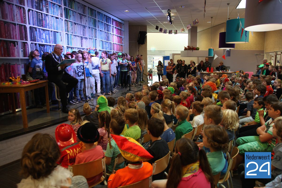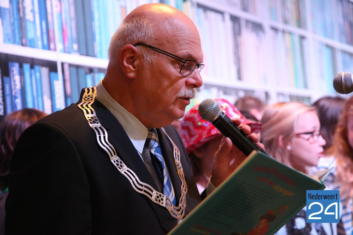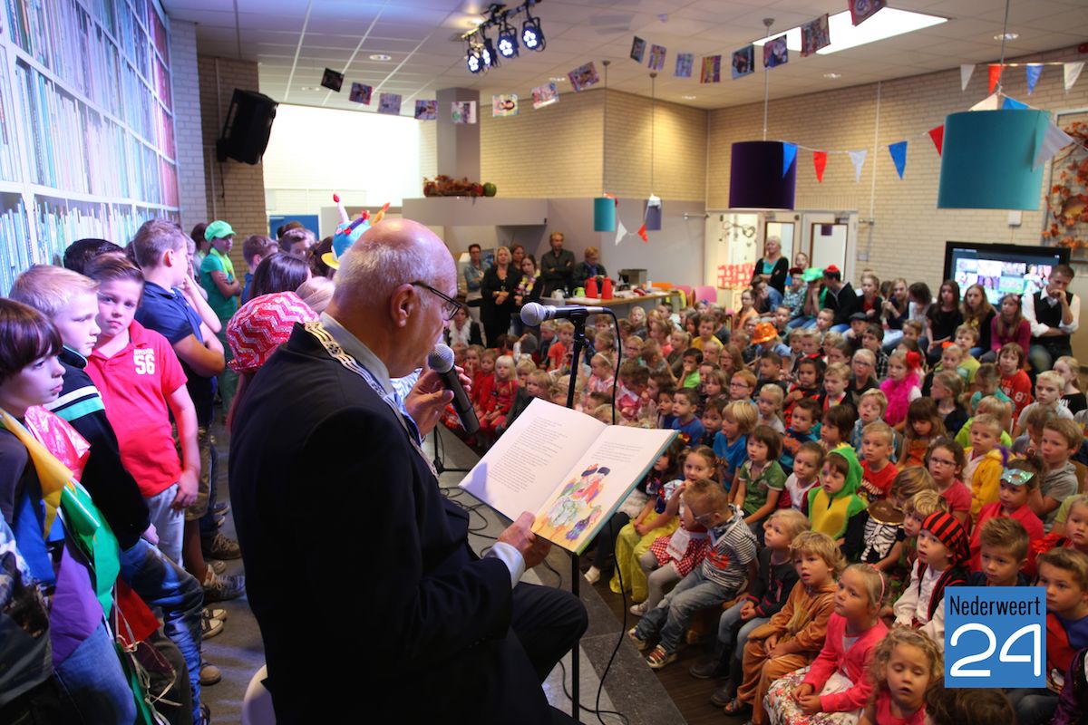 De Kinderboekenweek bestaat dit jaar 60 jaar en dus staat dit jaar alles in het teken van “Feest”. Om het jubileum groots te vieren zou er op basisschool de Klimop een Mysterie Guest komen. Na dagen van voorbereiding door de kinderen was vandaag de grote dag. De kinderen mochten vanmorgen verkleed naar school komen. In de aula van de school kwam dan eindelijke de mysterie guest: de burgemeester van Nederweert. De burgemeester had zijn ambtsketen meegebracht om het officieel te maken. “Zonder de ambtsketen ben ik opa van een kindje hier op school, met deze ambtsketen ben ik eigenlijk pas echt burgemeester. Maar ook dan blijf ik opa!” aldus de burgemeester.