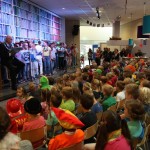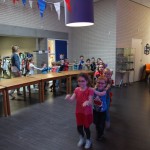 Voor de officiële opening heeft de burgemeester aan alle kinderen een verhaal voorgelezen over de verjaardag van de schoenen. Na het doorknippen van een lint met een hele grote schaar zongen de kinderen van groep zeven een openingslied. De hele dag zullen er activiteiten zijn rondom de Kinderboekenweek.