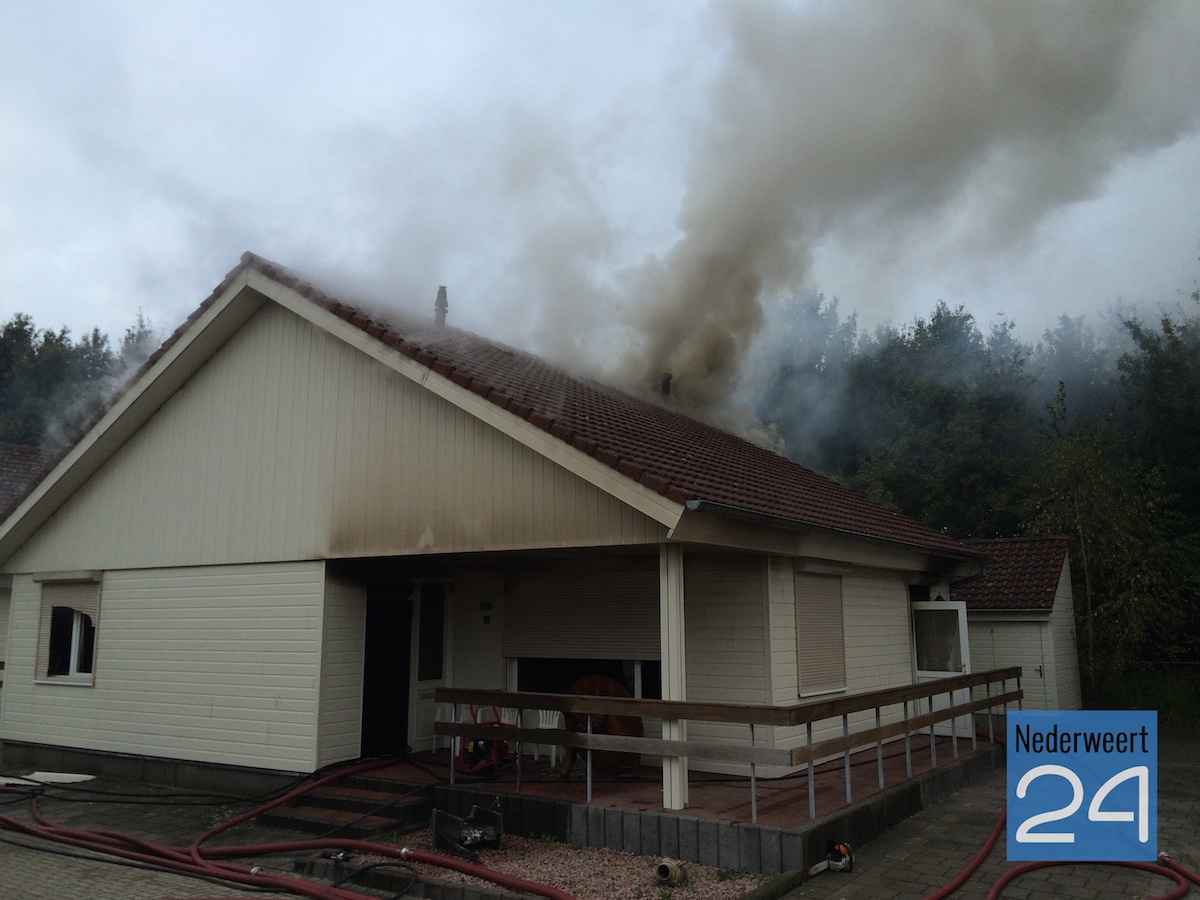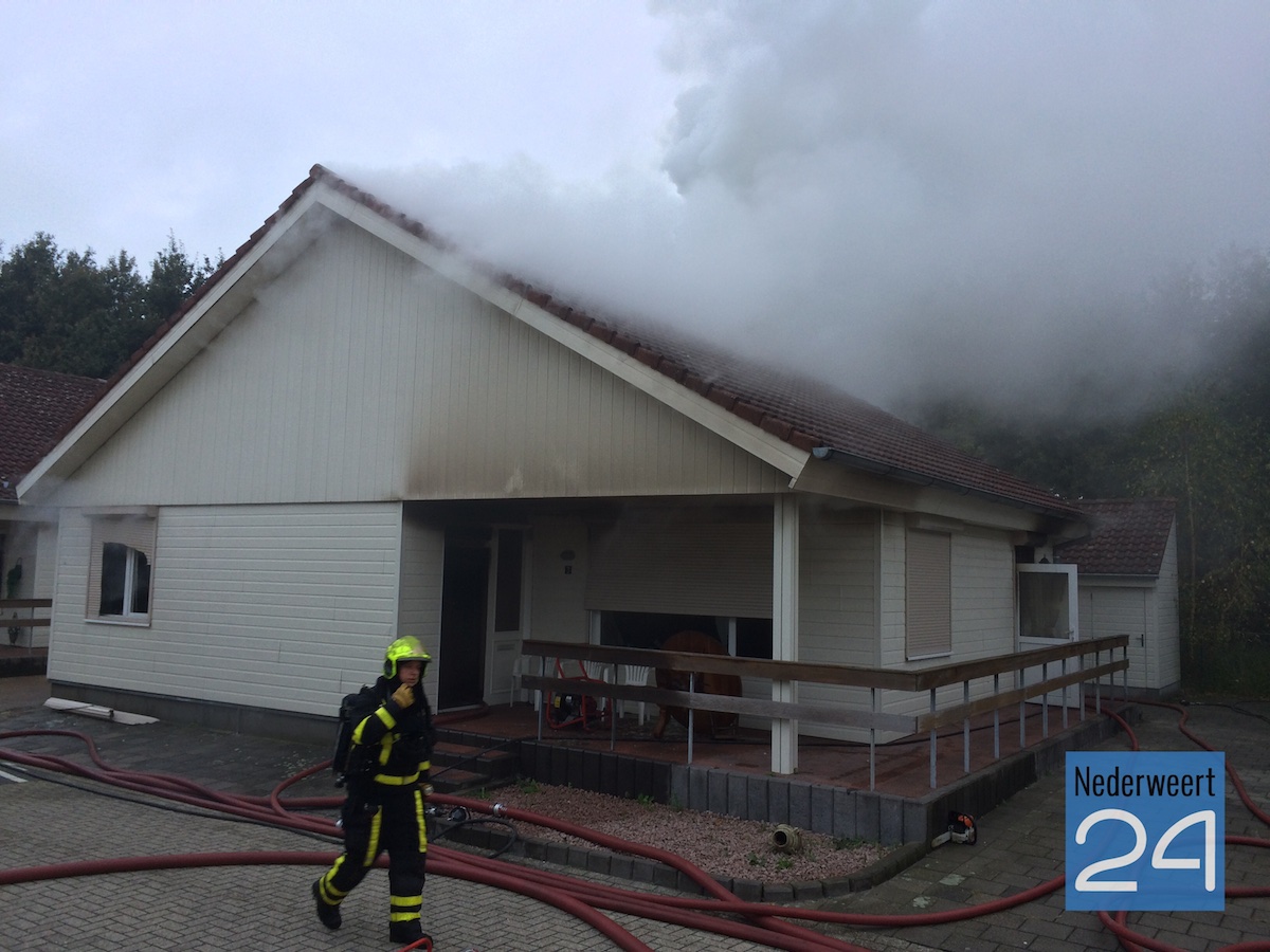 De buren hebben de brand ontdekt. De oudere man woonde alleen in de woning. De brandweer heeft het vuur onder controle en controleert nu de bovenverdieping. Het vuur is nog niet gedoofd, waarschijnlijk zit er nog onder het dak.