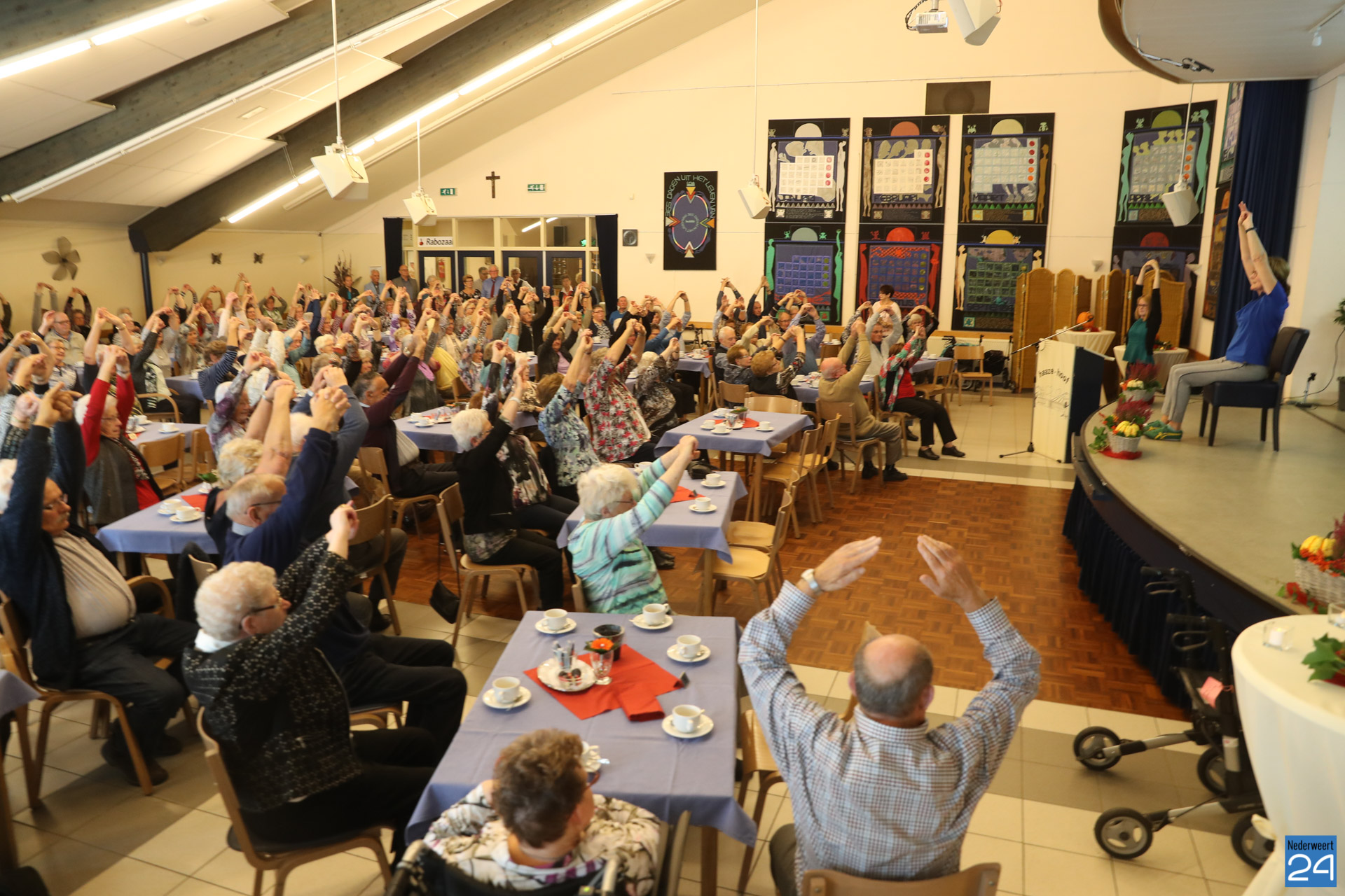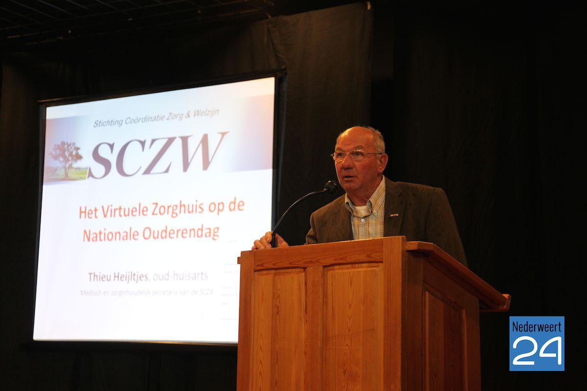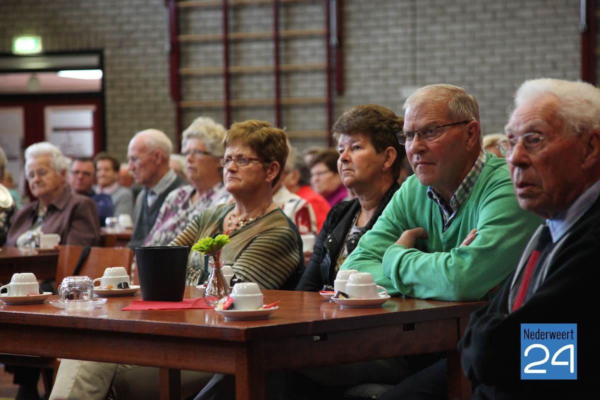 Daarna luisterden de ruim 130 ouderen uit de gemeente Nederweert aandachtig naar het verhaal van Thieu Heijltjes, oud-huisarts van Nederweert. Er zijn steeds minder jongeren en steeds meer ouderen die met de huidige plannen van de overheid hun zorg, voor zover mogelijk, zelf zullen moeten gaan organiseren. De overheid heeft lang gedacht dat preventie de juiste manier was, maar volgens Heijltjes is juist het signaleren het belangrijkste. Dat we ouder worden en dat dat een verslechtering van de gezondheid betekent, weten we allemaal. Het gaat er juist om dat er signalen opgevangen en gecommuniceerd worden op het moment dat het echt nodig.