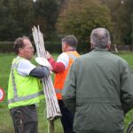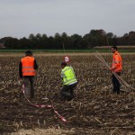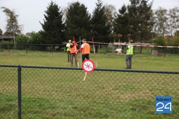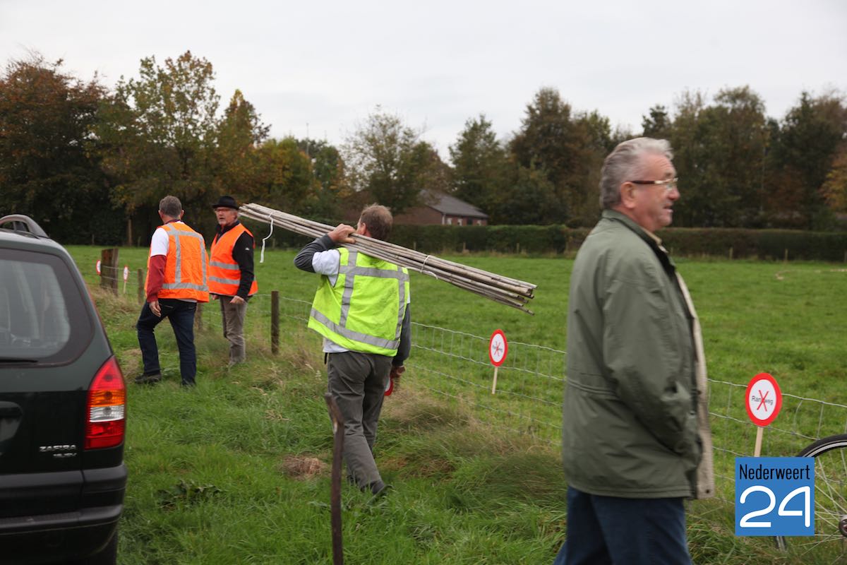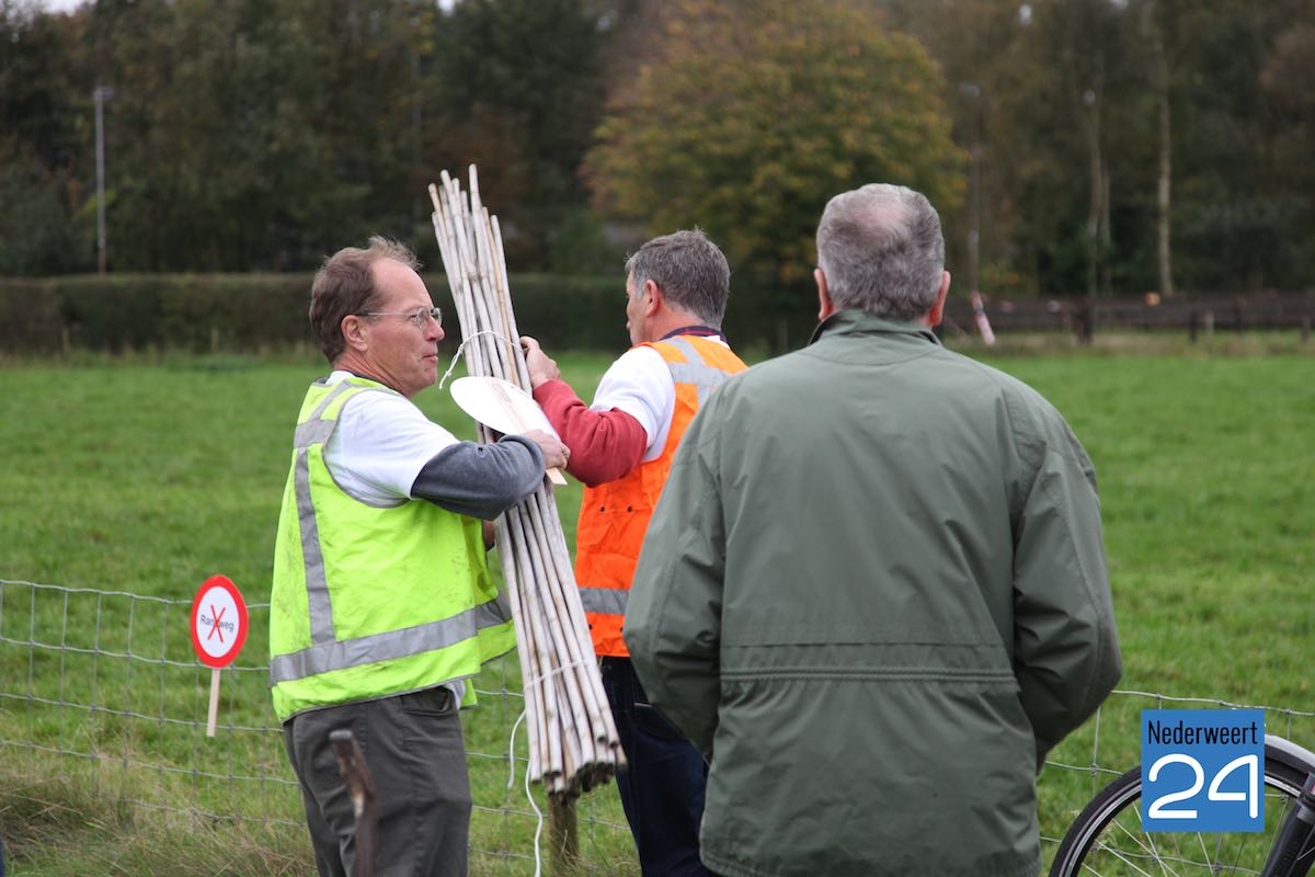 Vrijdagmiddag hebben tegenstanders van de nieuw aan te leggen Randweg in Nederweert een protestactie gevoerd. Met wit-rood lint en paaltjes gingen ze op verschillende plaatsen de landerijen in om de nieuwe weg te markeren.