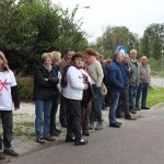 Ruim 50 personen waren aanwezig om daarmee vooral hun “tegen” stem te laten horen. Met de actie willen ze vooral zichtbaar maken waar de pijnpunten liggen bij de aanleg van deze onnodige en veel te dure randweg. Half door een paardrijbak, midden door een huis en op verschillende plaatsen vlak naast woningen.