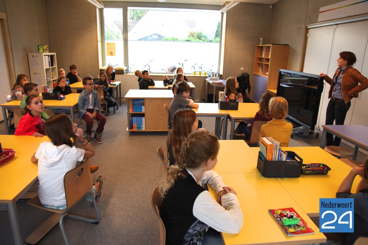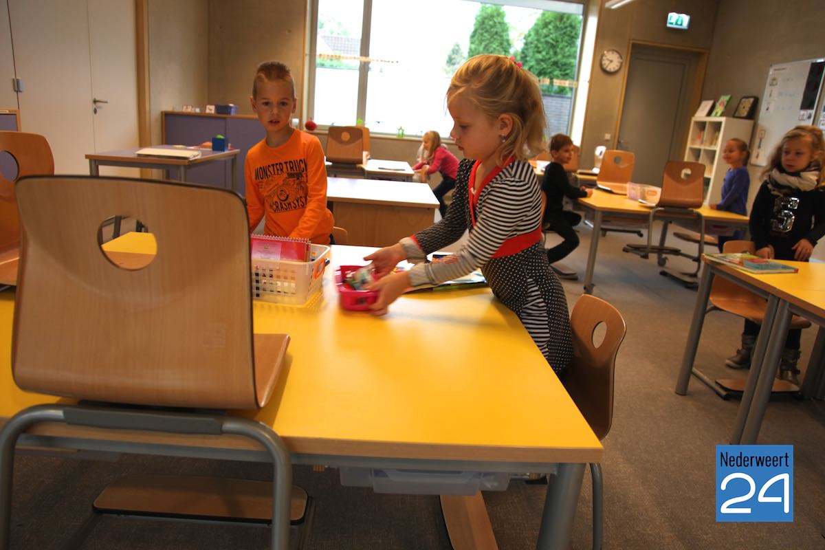 Basisschool De Tweesprong eerste les dag nieuwe school 24De leerlingen van Basisschool de Tweesprong krijgen vandaag voor het eerst les in hun nieuwe school. Vanochtend om half negen werden ze allemaal welkom geheten door Margo Jacobs, de schooldirectrice, waarna ze allemaal hun eigen nieuwe lokaal mochten opzoeken.
