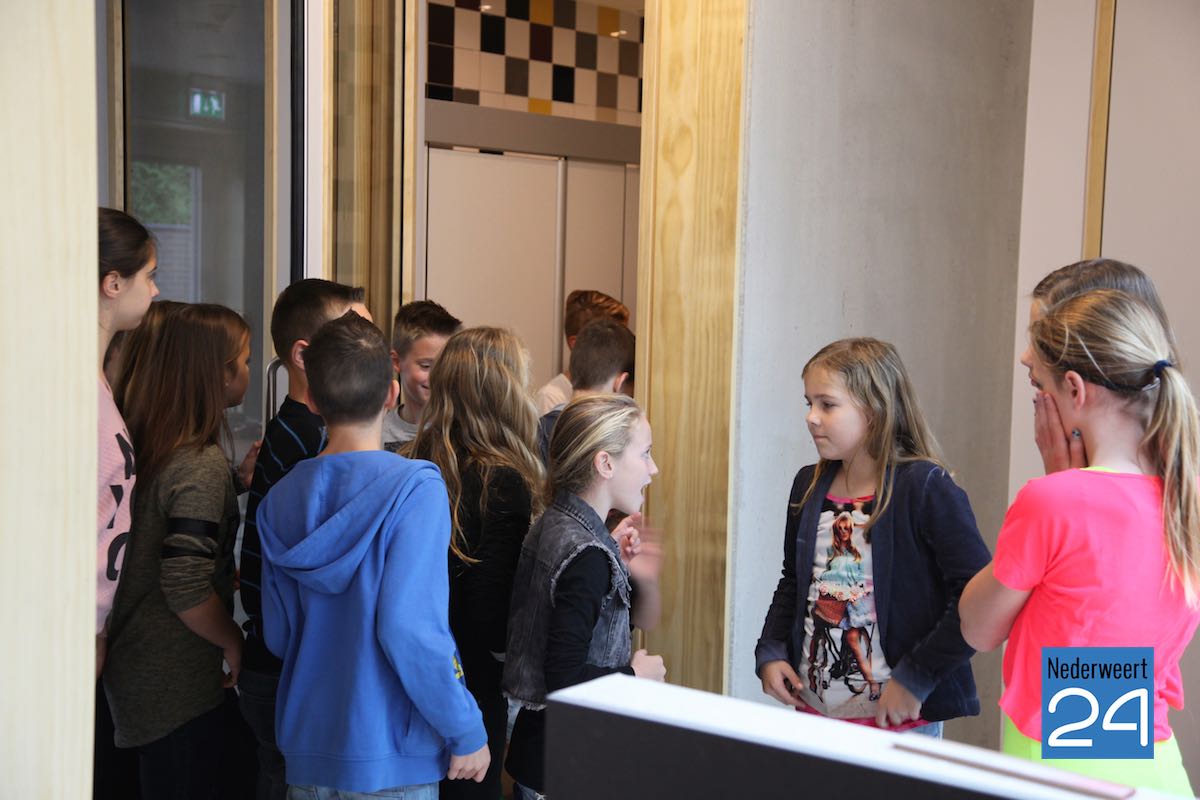 Voor de meeste kinderen was het spannend. Enthousiast liepen ze de nieuwe school binnen op zoek naar hun lokaal en hun eigen lestafeltje. Onder begeleiding van de juf werd elke groep naar het juiste lokaal gebracht. Daarna kregen alle kinderen een rondleiding door het hele gebouw. Wel handig als je weet waar de WC is en waar je de bibliotheek kunt vinden.