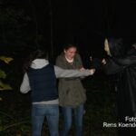 De jeugd en ook ouderen liepen een spannende tocht die werd georganiseerd door de drie buurtverenigingen onder leiding van een aantal professionele organisatoren. Je had toch wel een beetje lef nodig om de tocht zonder kik te lopen.