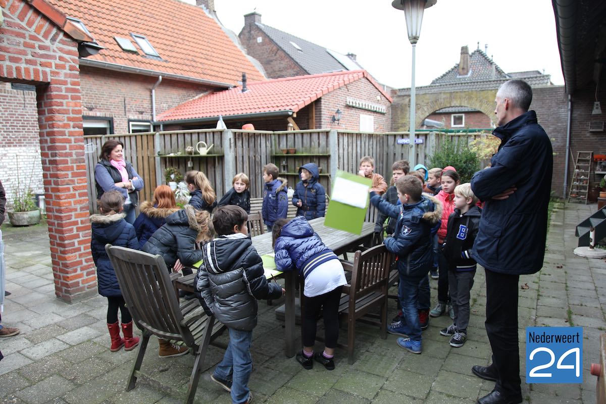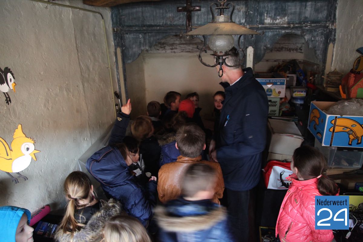 Op vrijdagmiddag 7 november verzorgde Alfons Bruekers voor leerlingen van de groepen 5 en 6 een rondleiding langs historische bezienswaardigheden in de dorpskern van Nederweert. De wandeling voerde langs het oudste café van Nederland (“Saame bi-j Siem”), de kerktoren, de gerestaureerde waterput in de Kerkstraat en diverse andere monumenten. Een van de hoogtepunten was een bezoek aan de ‘geheime’ schuilkerk en de legendarische “Keet van Peet’ in de monumentale boerderijschuur van Thea Bongers.