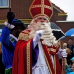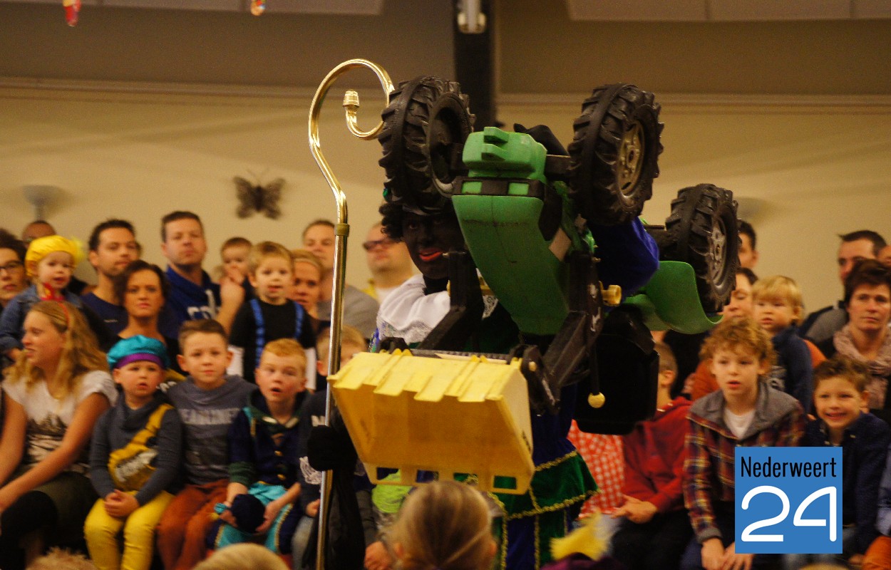 De Sint en zijn Pieten waren eigenlijk al sinds gisteren avond in Ospel. Ze waren blijven slapen bij een boer. Met verschillenden tractoren werden ze vanmiddag, iets later dan gepland, afgezet bij het Haaze-hoof. Als dank voor de goede hulp hadden alle pieten klompen gekregen van de boer. “Poetspiet” was niet op tijd terug omdat hij de staf van Sinterklaas nog niet schoon had. De sint moest het zolang doen met een schoffel.