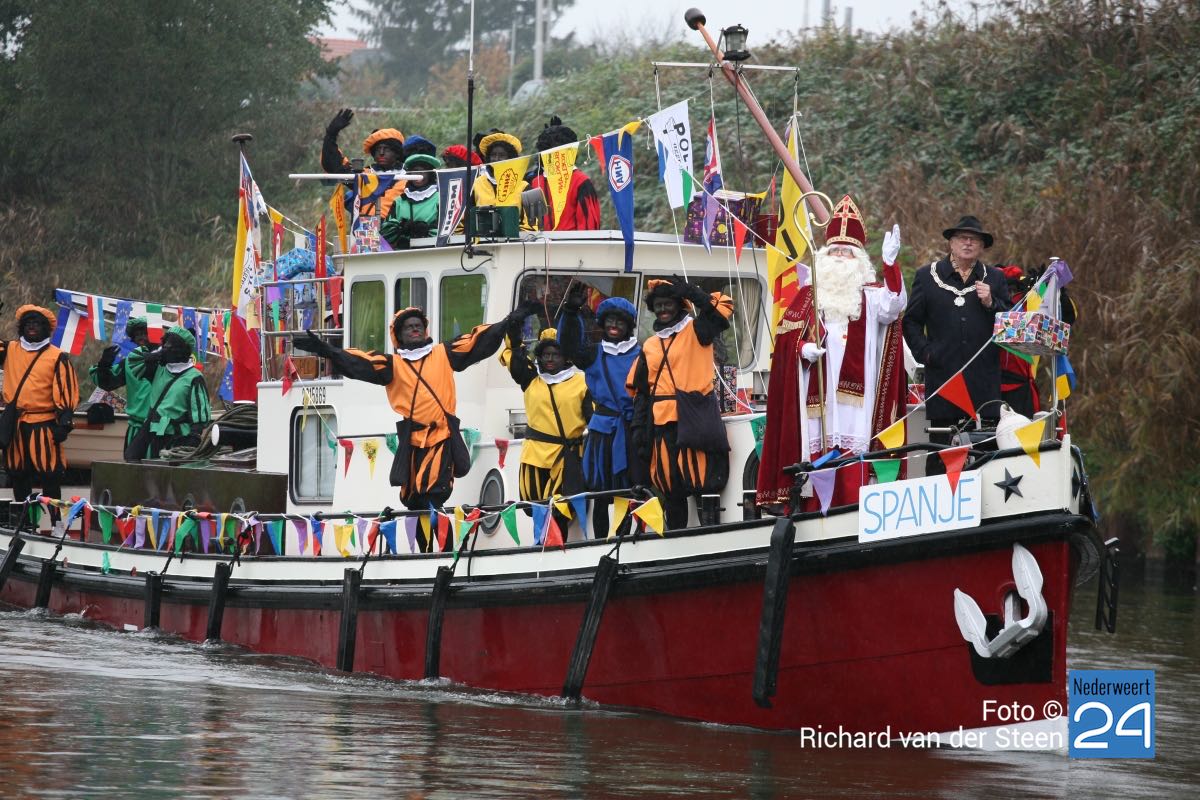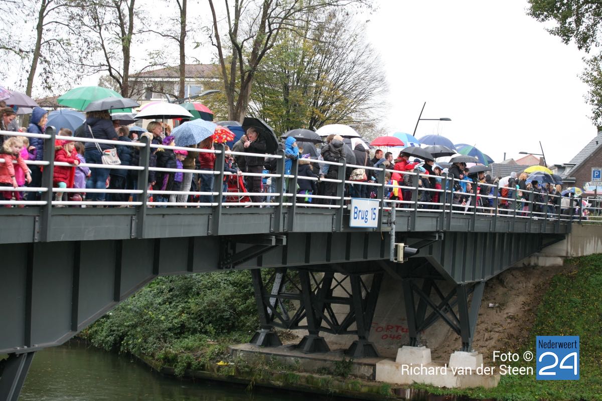 Zondagmiddag was het, ondanks de regen, een drukte jewelste op en rondom Brug 15 en in Nederweert. Rond de klok van 14:00 uur meerde Sinterklaas en zijn Pieten aan in Nederweert. Dit jaar was de Sint mooi op tijd zodat de kinderen niet al te lang in de regen hoefden te staan. Hij werd vergezeld door boten van de scouting omdat de Sint niet genoeg plaats had op de pakjesboot.