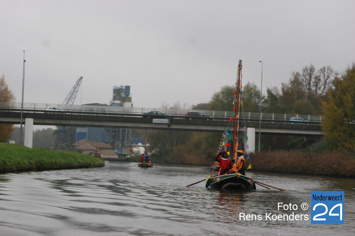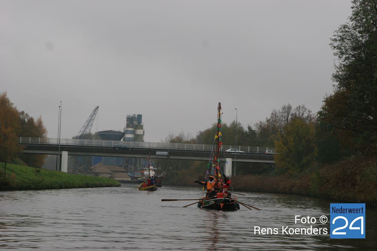 Rond de klok van 14:00 uur meerde Sinterklaas en zijn Pieten aan in Nederweert. Dit jaar was de Sint mooi op tijd zodat de kinderen niet al te lang in de regen hoefden te staan. Hij werd vergezeld door boten van de scouting omdat de Sint niet genoeg plaats had op de pakjesboot.