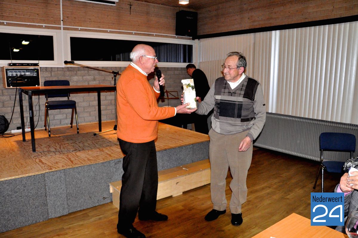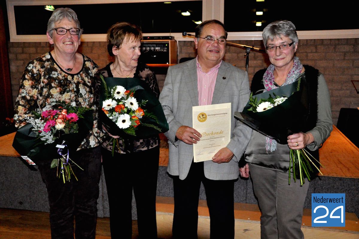 De oorkonde ontvangt hij van de Sint-Gregoriusvereniging in het bisdom Roermond omdat hij zich 50 jaar heeft ingezet voor de muziek ten dienste van de liturgie. Het koorbestuur, het kerkbestuur en dhet diocesaan bestuur danken Wim voor zijn bedragen. Namens het koorbestuur ontvangt hij een dinerbon en wordt ook zijn vrouw Tillie bedankt met een bos bloemen.