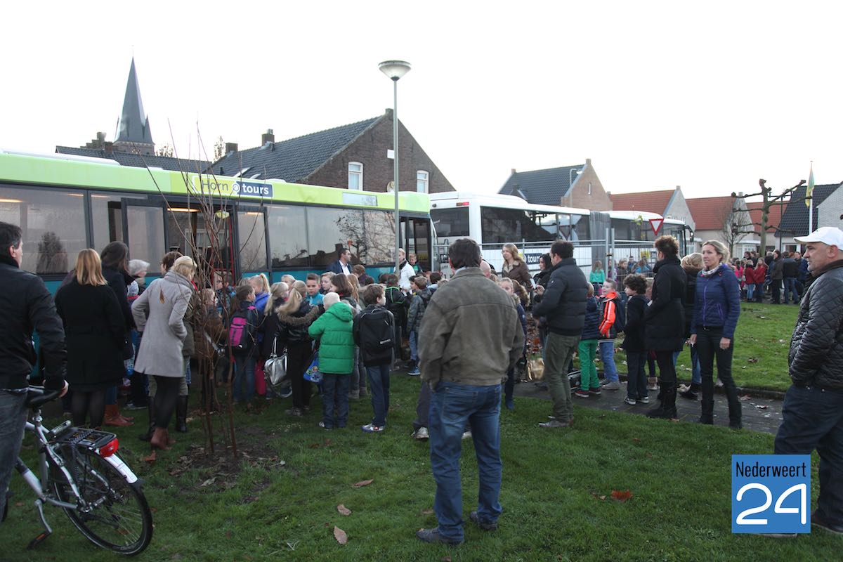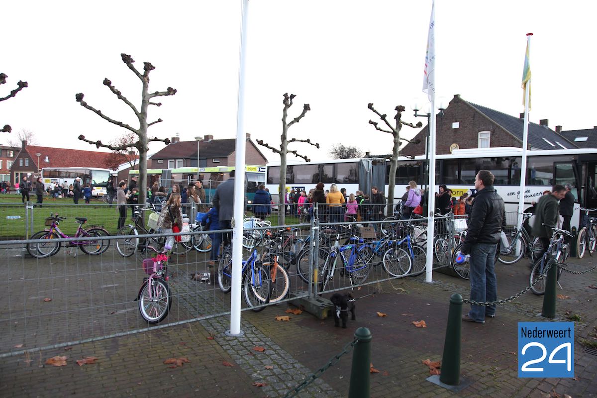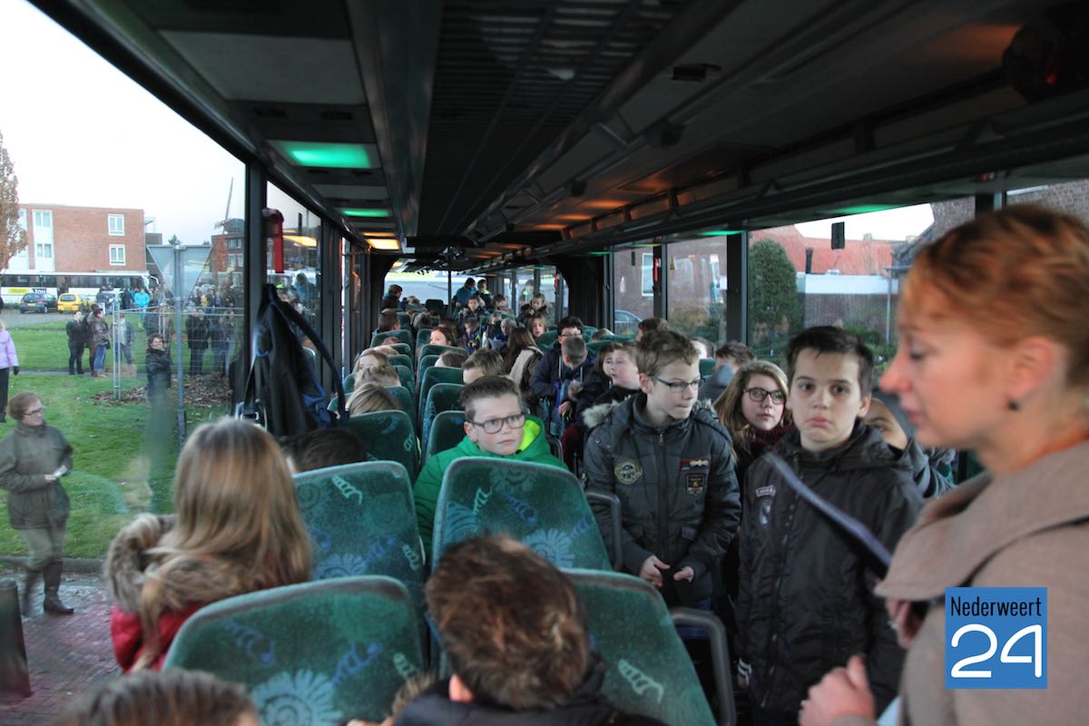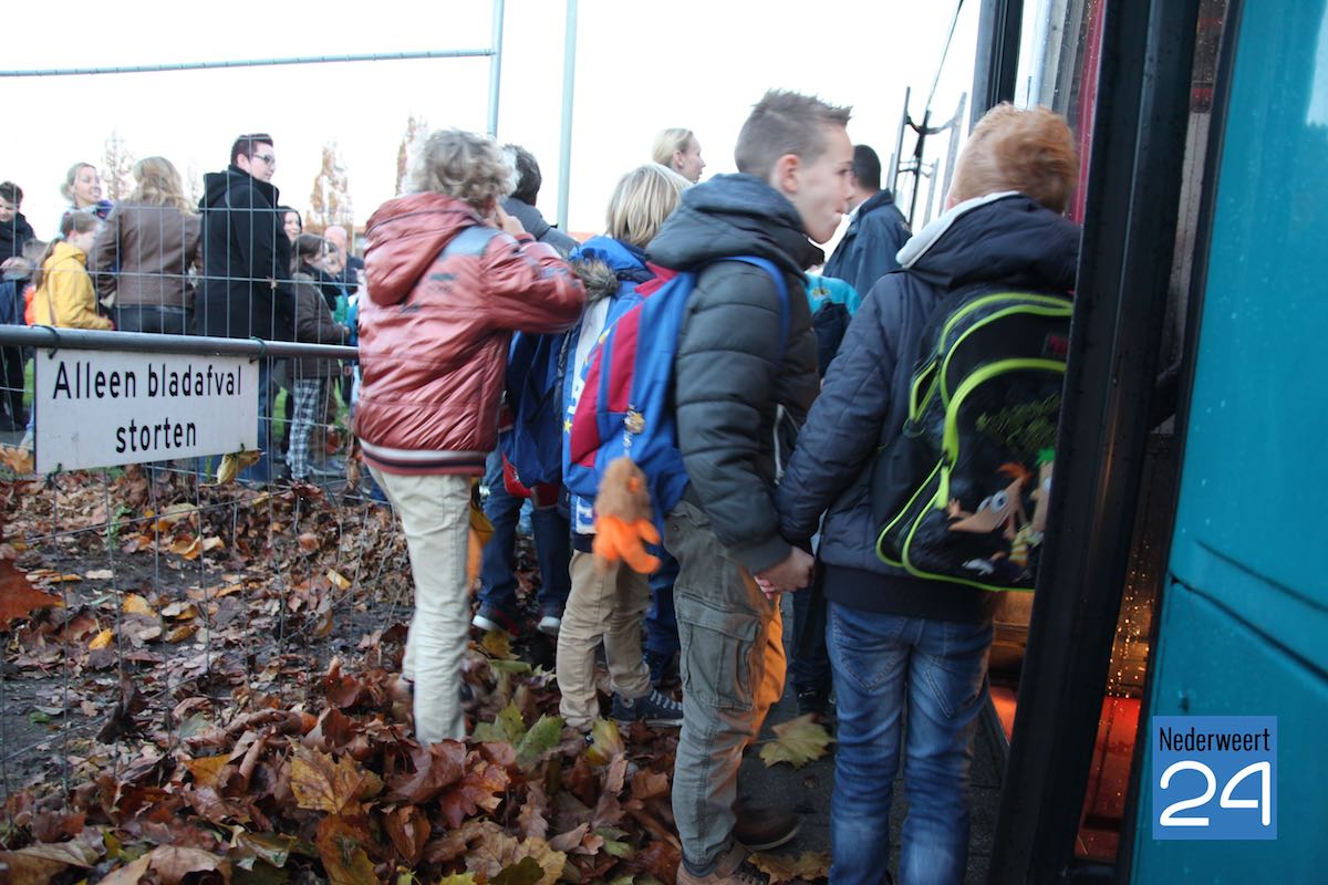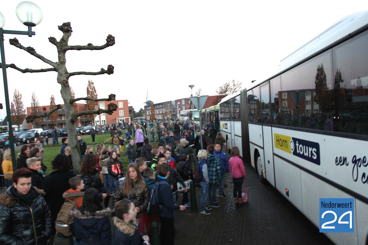 Basisschool de SchrankHet was maandagochtend een drukte van jewelste op het Aerthijsplein in Ospel. Alle leerlingen en leraren van Basisschool De Schrank stonden klaar om voor de eerste keer met de bus naar de tijdelijk school in Budschop en Weert  te gaan.