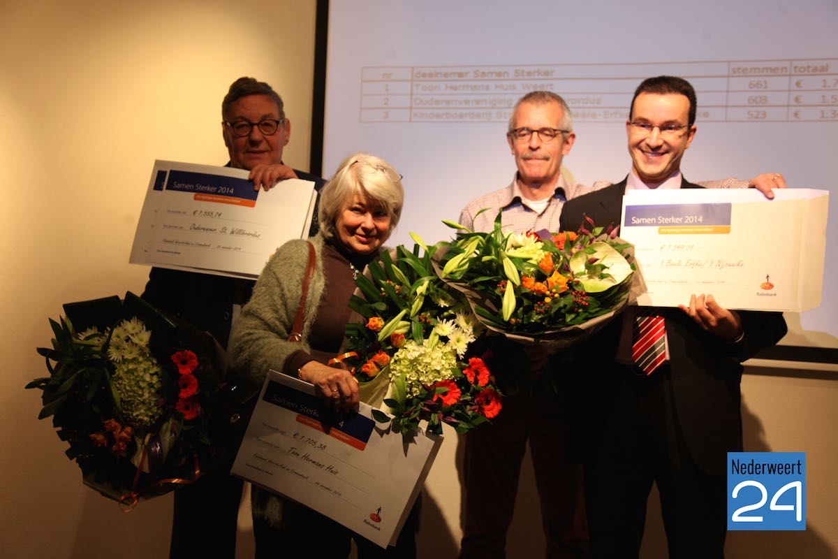 De Rabobank keerde in totaal 75.000 euro uit aan 298 verenigingen. De meeste stemmen en dus het hoogste bedrag ging naar het Toon Hermans Huis in Weert. Op de tweede en derde plaats eindigden de Ouderenvereniging St. Willibrordus en Kinderboerderij ’t Bèèle Erfke/’t Nijsweike uit Stramproy.